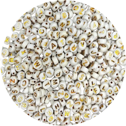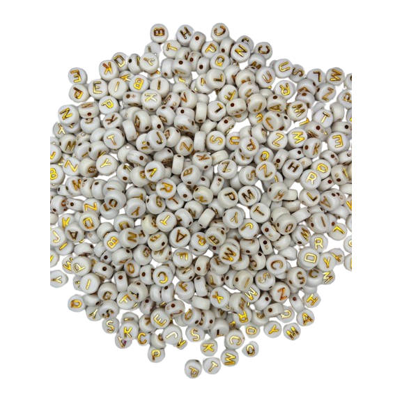 Miçanga letras 500 unidades aprox. redonda achatada branca e dourada 70 g