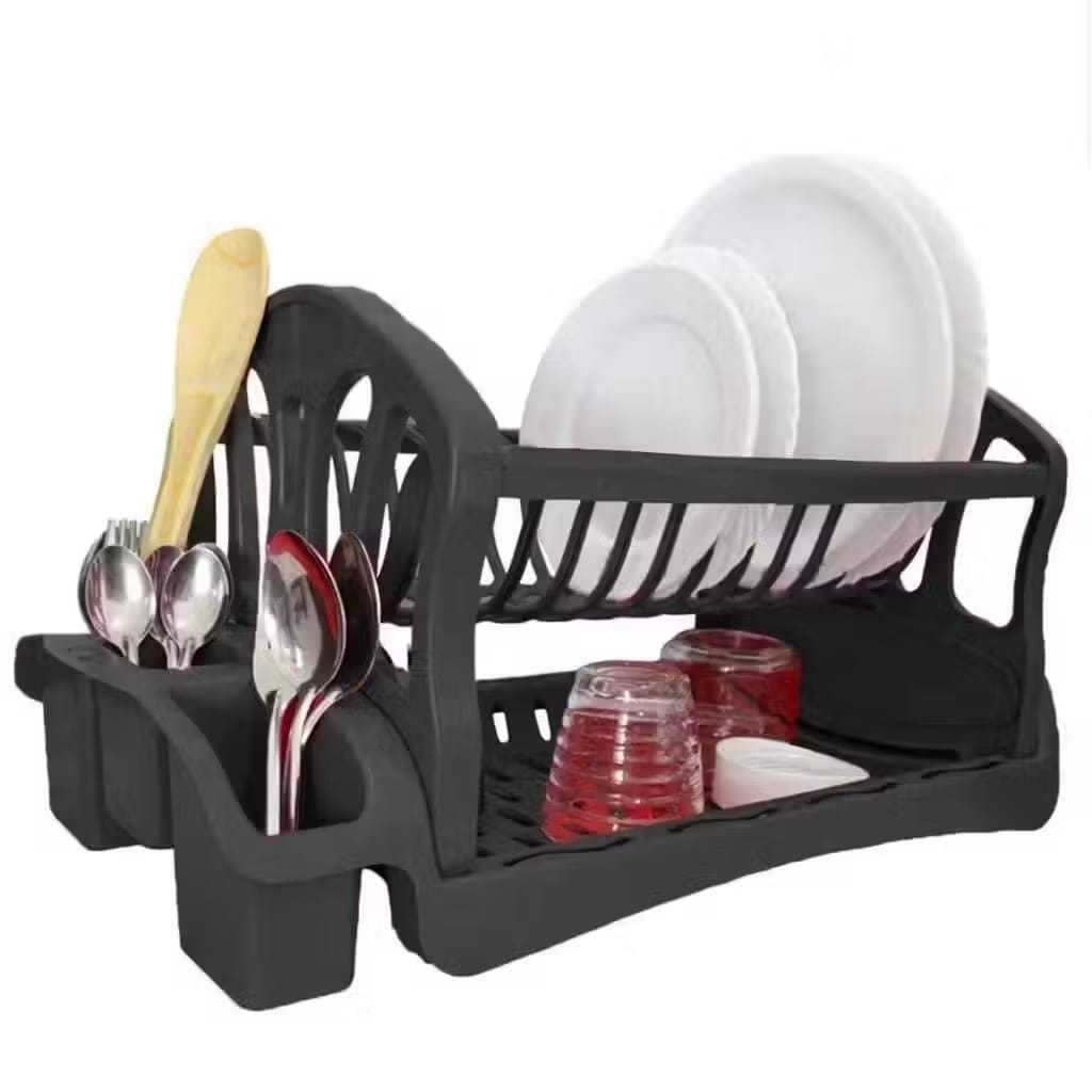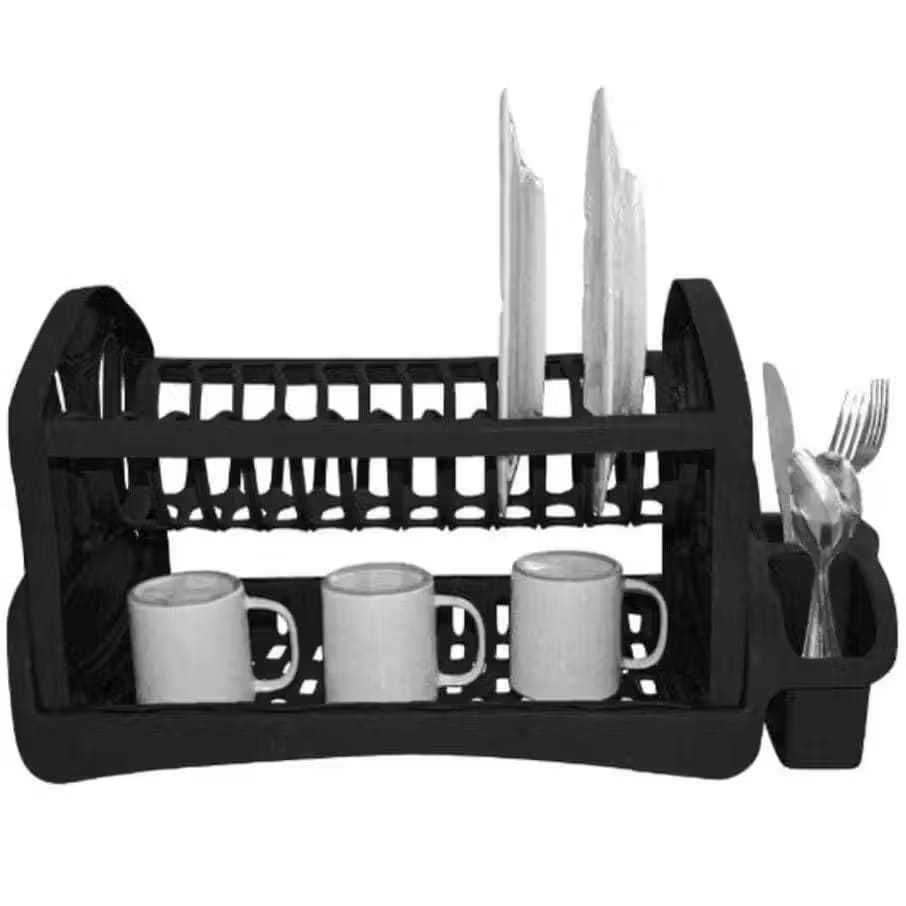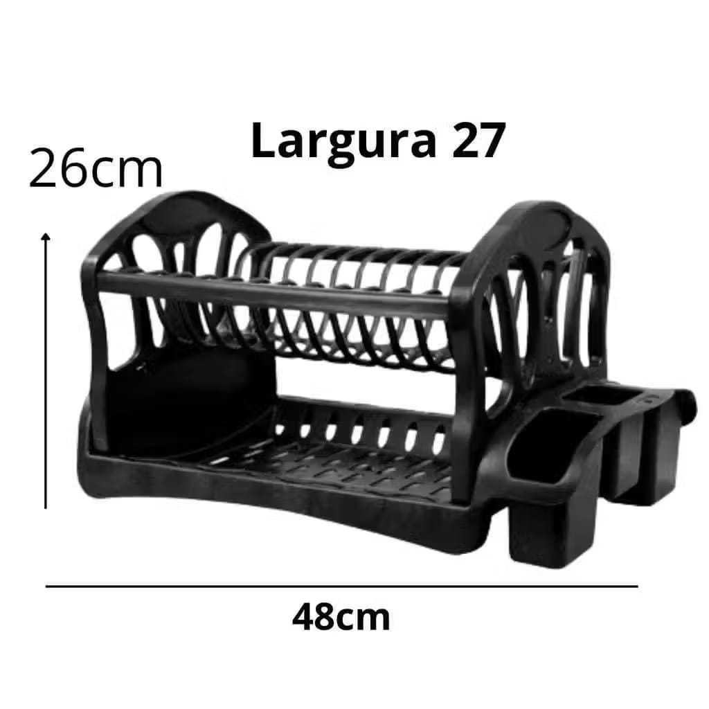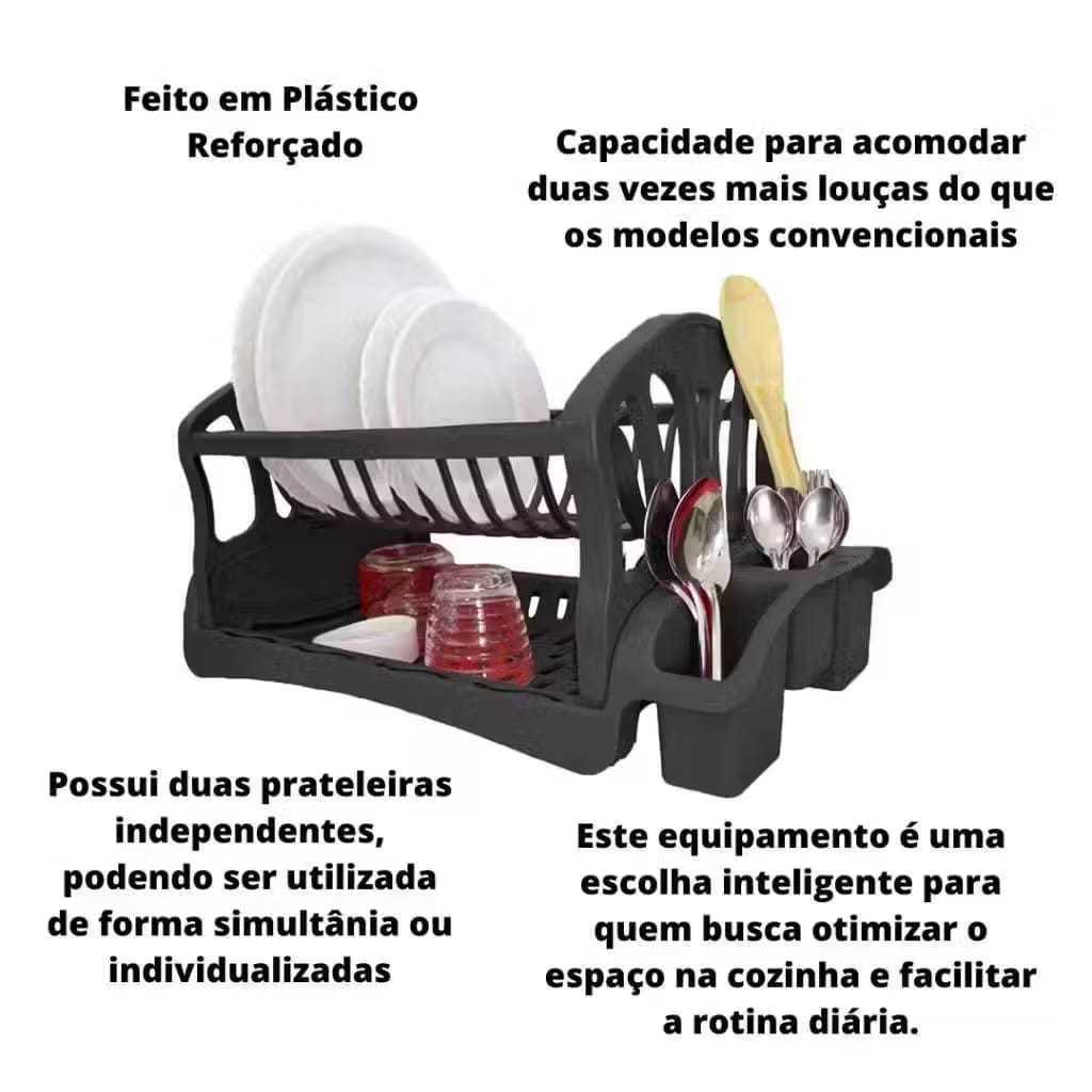 Escorredor Duplo de Louças 13 Pratos, Porta Talher e Copo Para Cozinha Preto