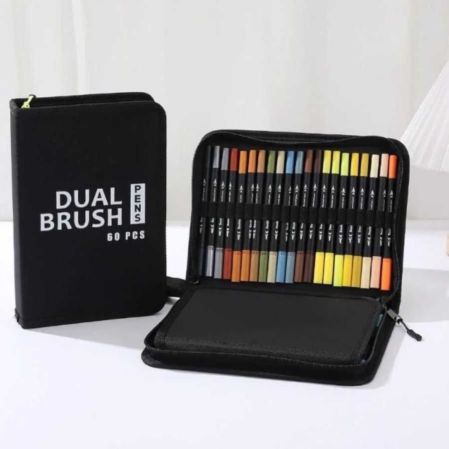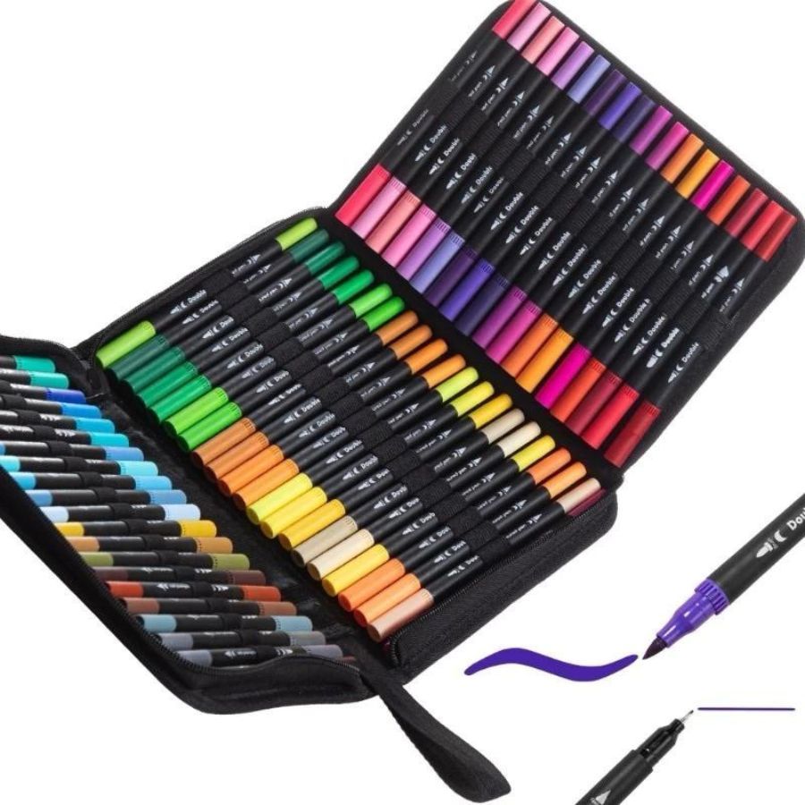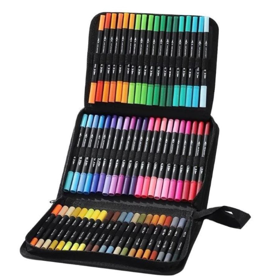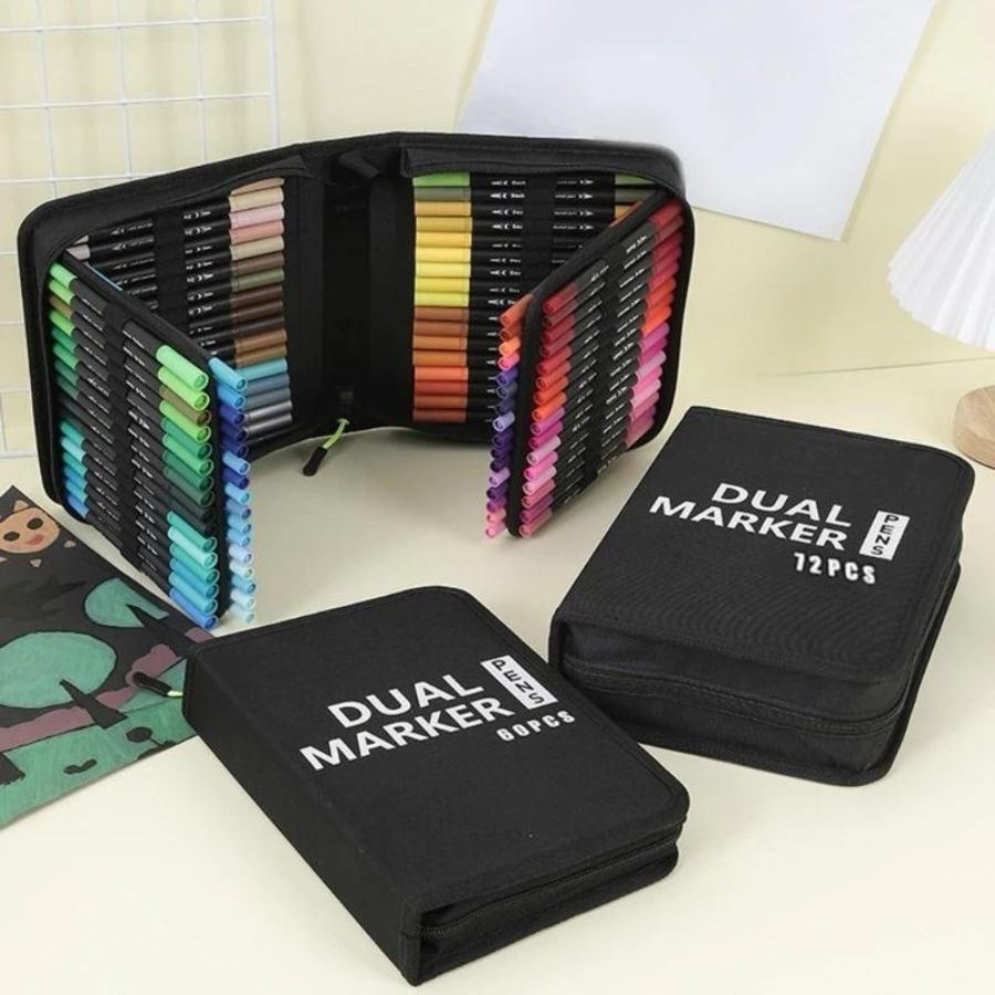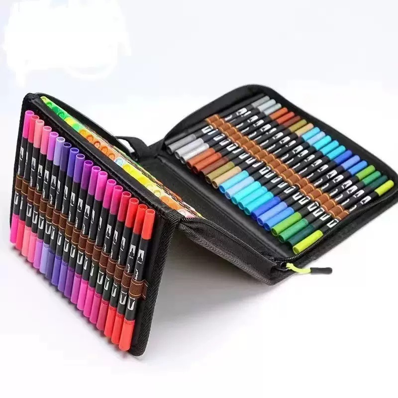 48/60/80/100/120 Cores Ponta Dupla Pincel Dual Colorido Fina Com Estojo De Armazenamento Zíper