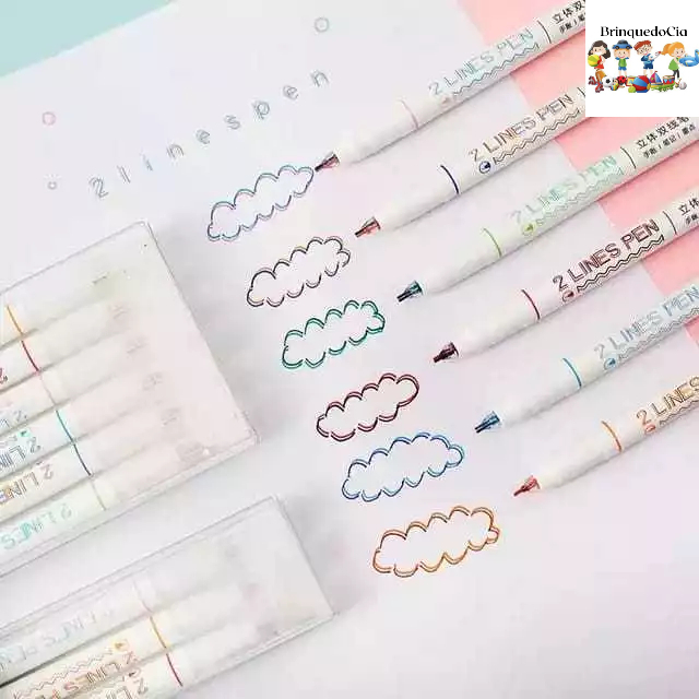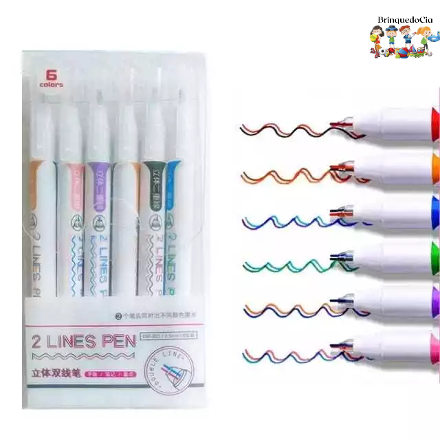 Duas Linhas Caneta 6 Peças conjunto 3D Visual 2 Line com magica e tintas diferentes