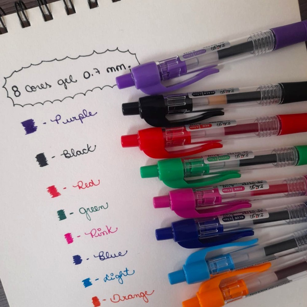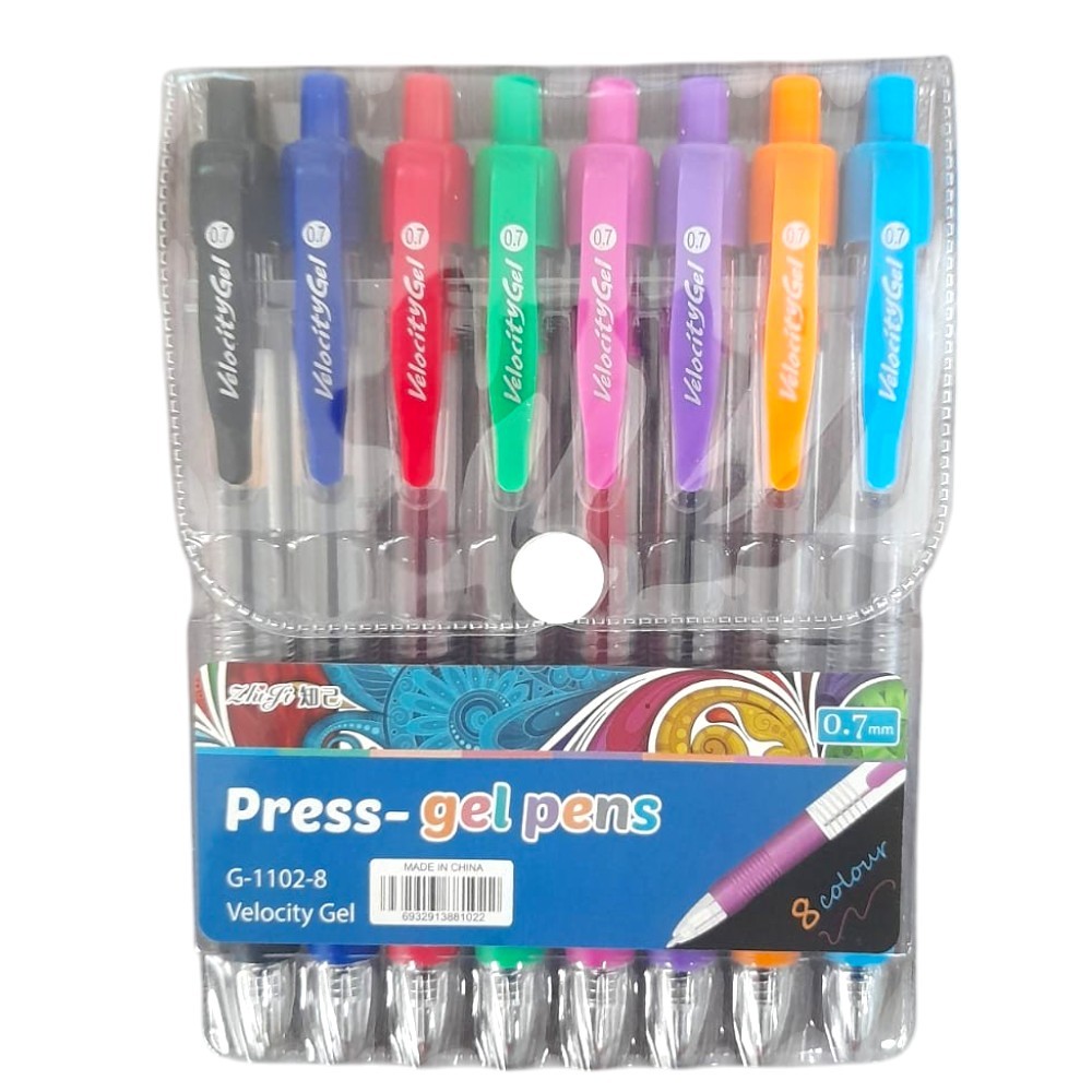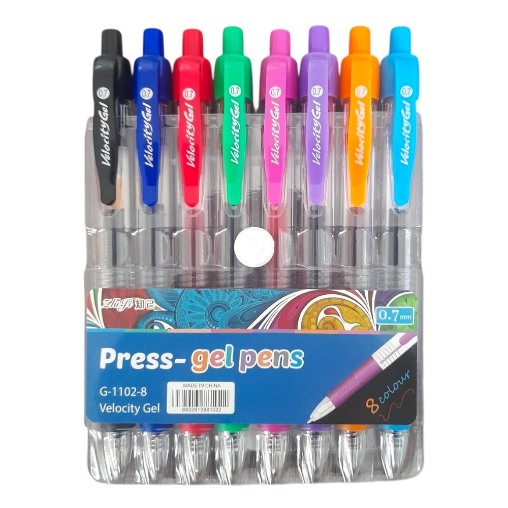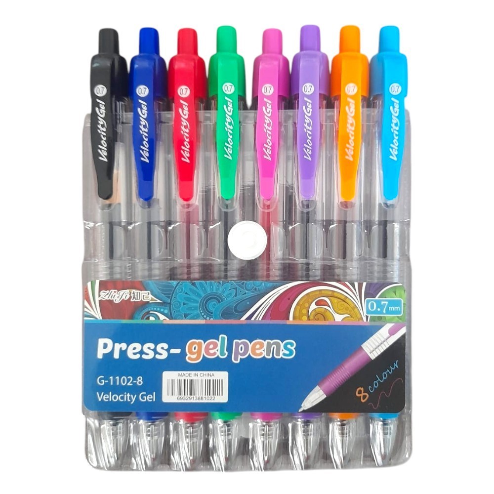 Kit com 8 Caneta Press-Gel Pens Coloridas (G-1102-8) Ponta 0.7mm / Papelaria