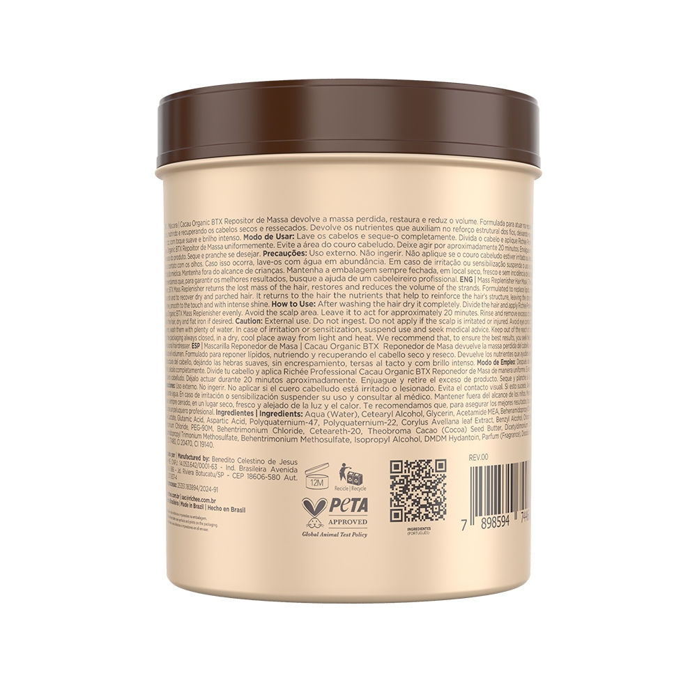 BTX Capilar Cacau Organic Repositor de Massa Termoativado 1kg