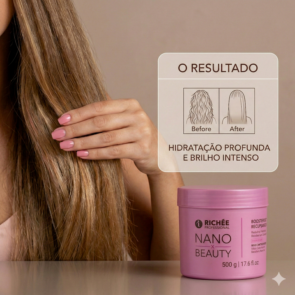 NanoBeauty BTX Booster Recuperação Termoativado Antifrizz 500g NanoBTX Repair Repositor de Massa Richée Professional