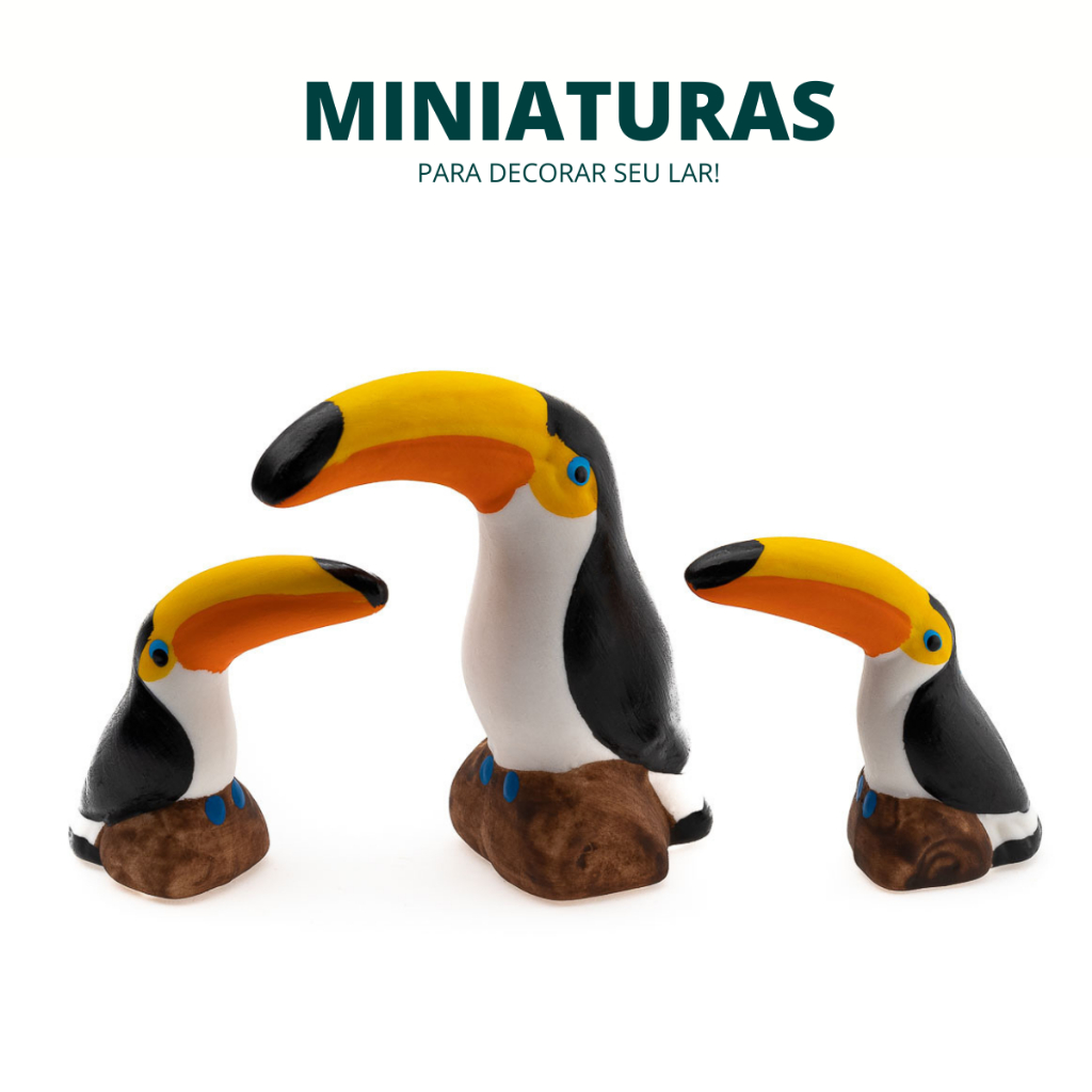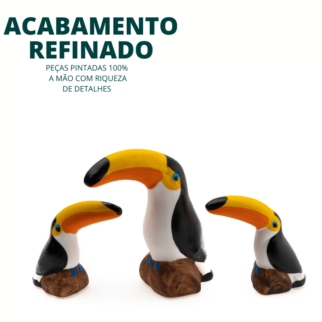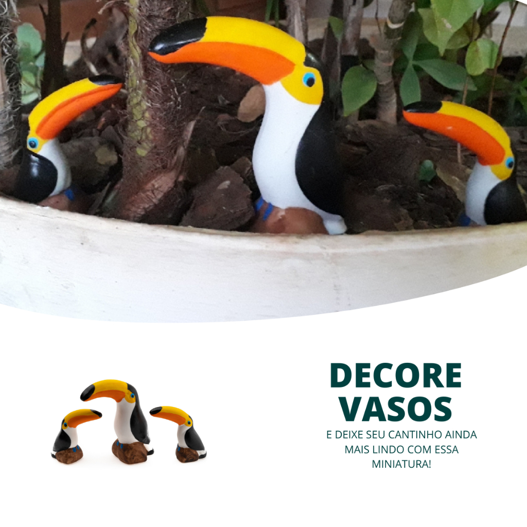 Miniatura Trio Familia Tucano Enfeite Jardim Vaso Decoracao Porcelana