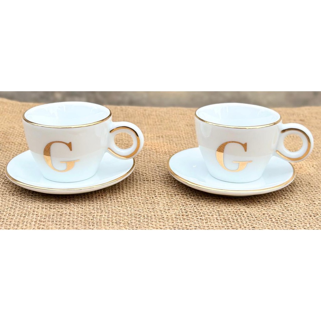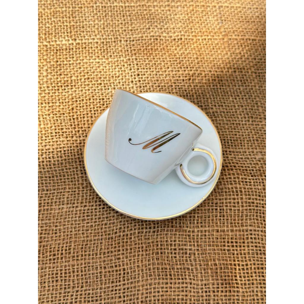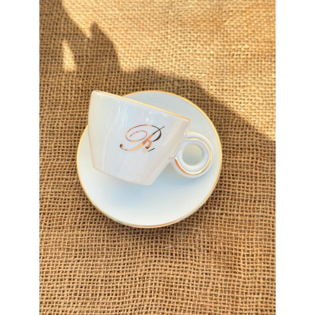 1 Xícara c/ pires 75ml person. inicial ouro + filete ouro