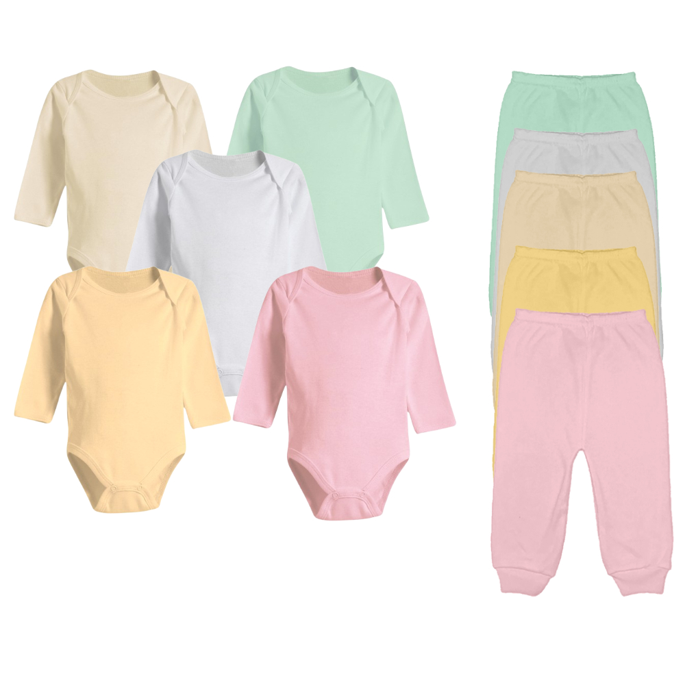 Kit 10 Peças Roupinhas de Bebê Body Longo Liso ou Estampado e Mijão
