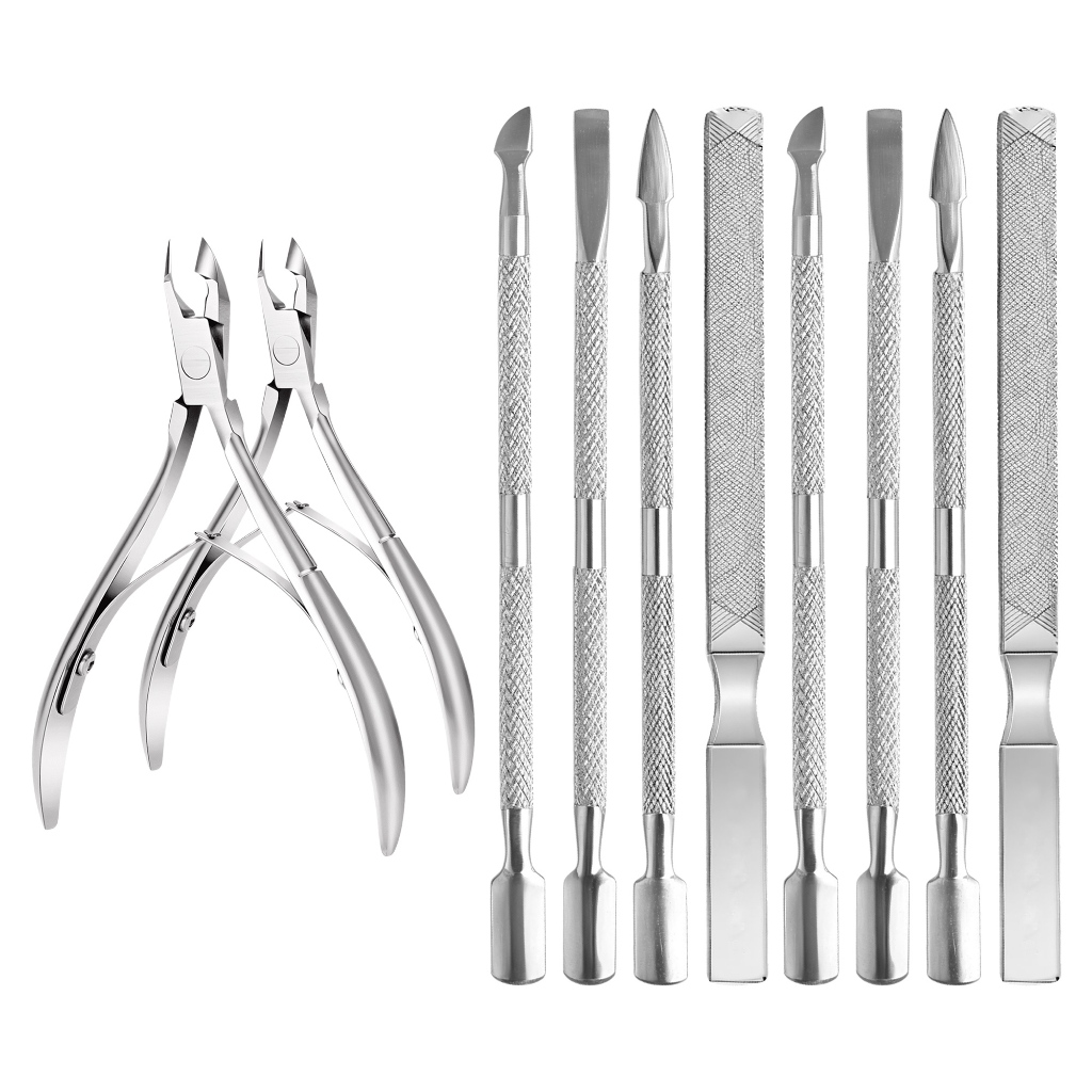 Kit Manicure Profissional Inox 5 Peças Alicate Palito Espátula Autoclave Raspador Unhas