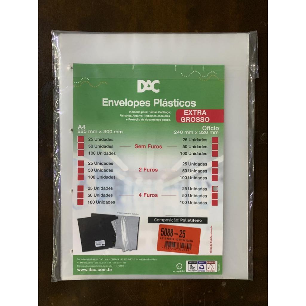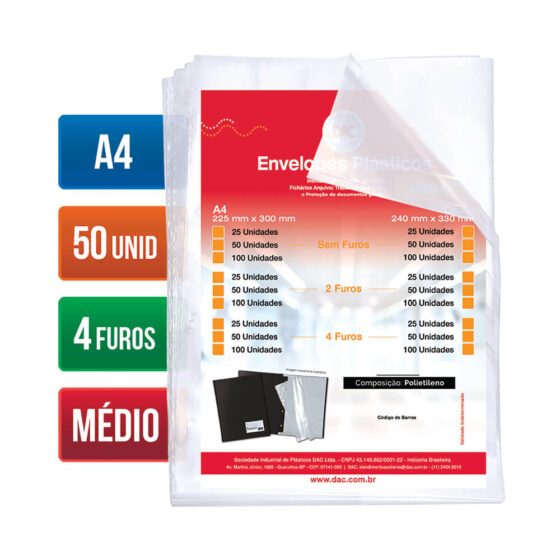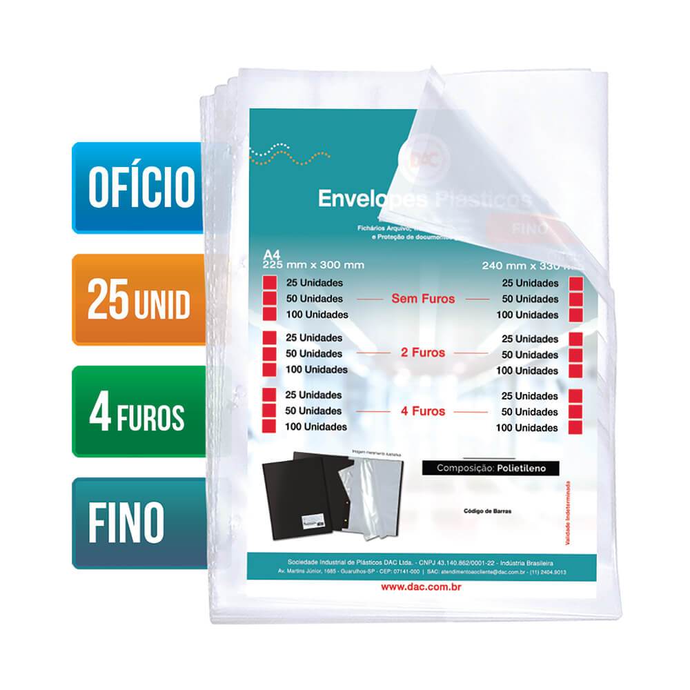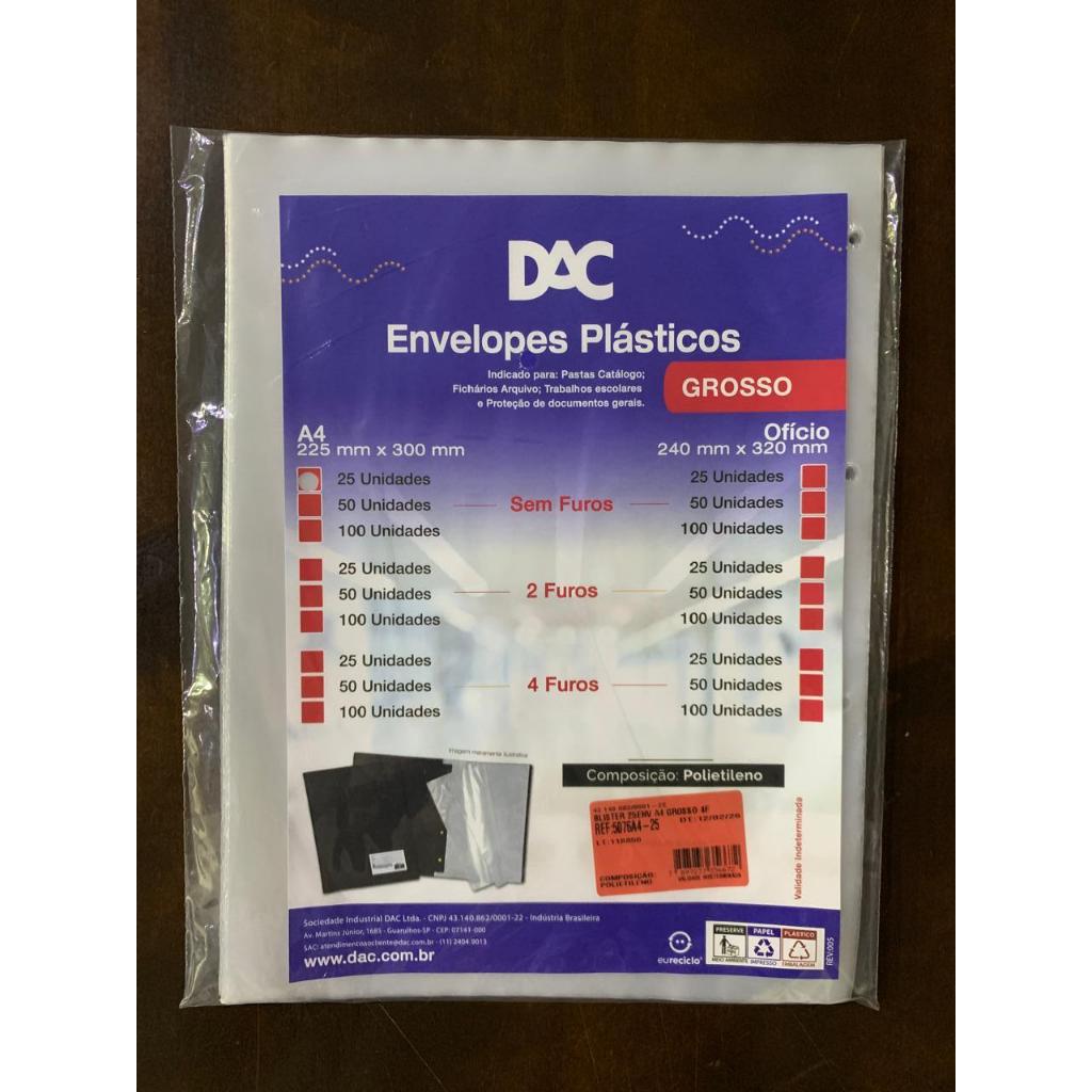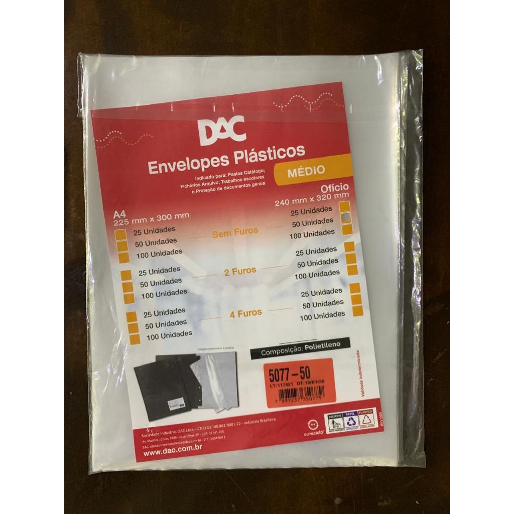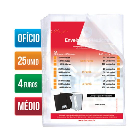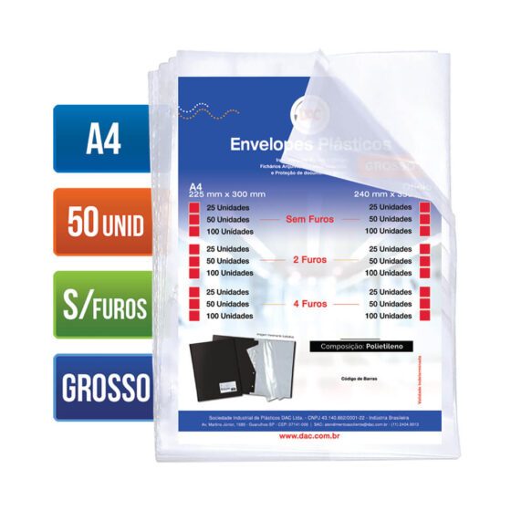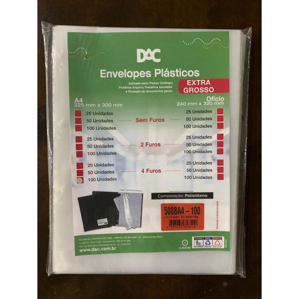 Saco Plástico PE Transparente A4 / Ofício Simples C/ Furos ou Aba Adesiva