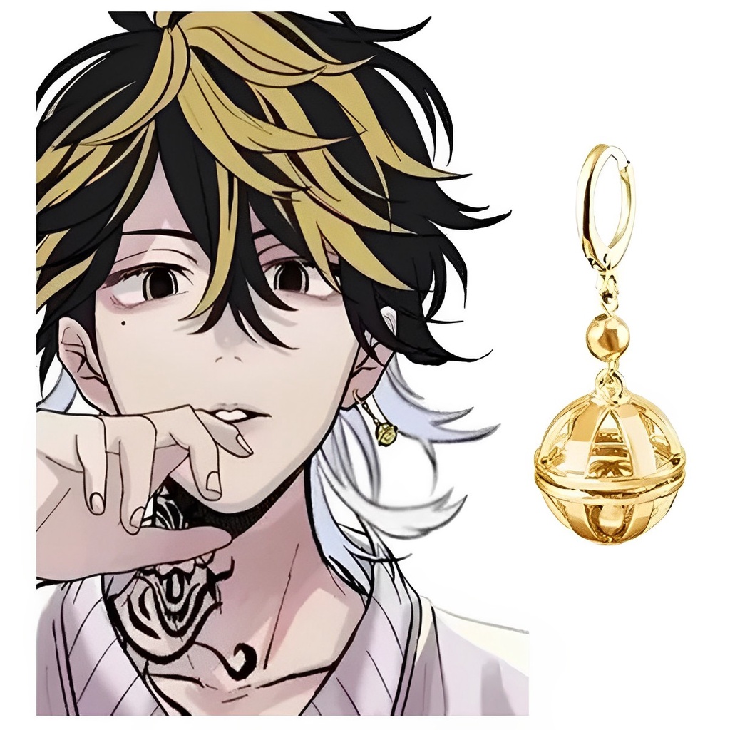 Brinco Tokyo Revengers Mangá Kazutora Hanemiya Prateado Dourado