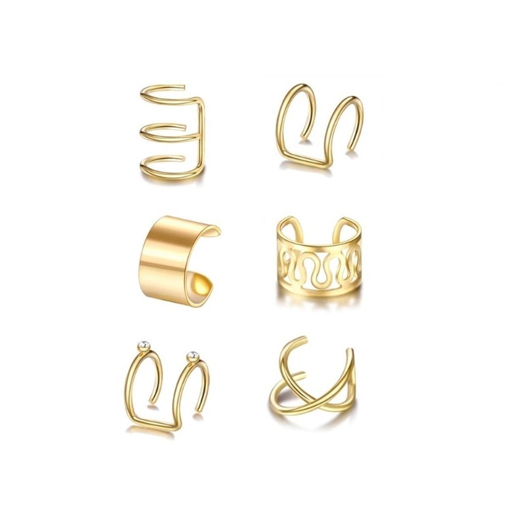 Kit 6 Brincos Feminino Pressão Piercings Orelha Banhado Ouro