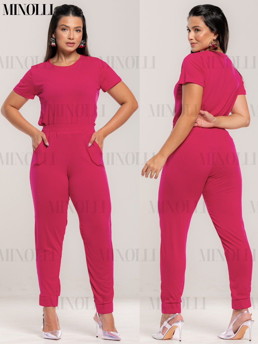 Conjunto Feminino em Malha Suede Light Calça Jogger Blusa Feminina Básica Confortável Fardamento