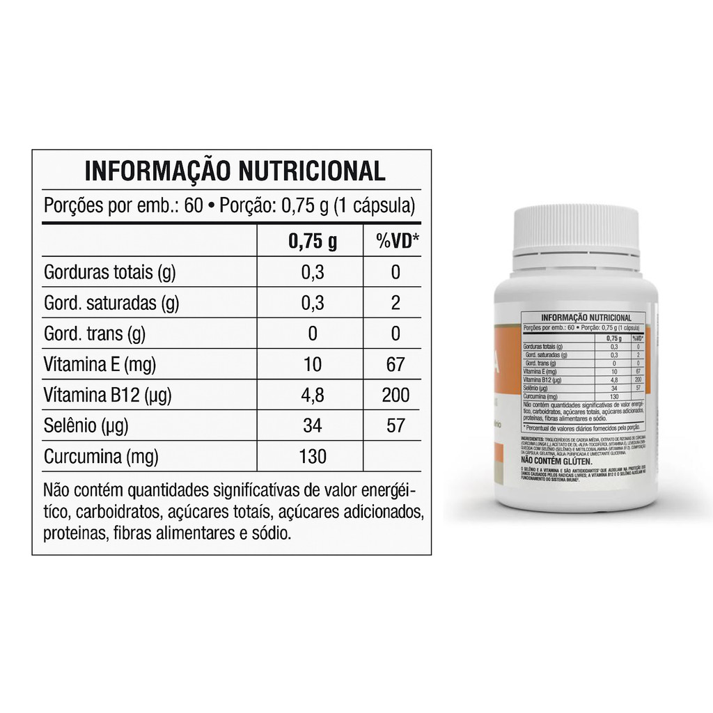 Curcuma Plus 60 Capsulas / Com Vitamina E, B12 e Selênio - VITAFOR