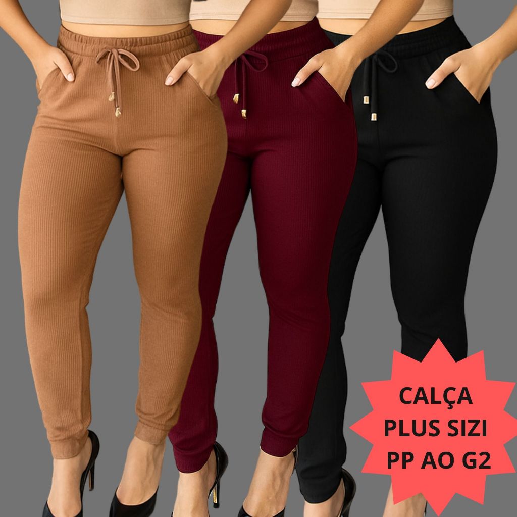 Calça Feminina Plus Size Joguer } Pantalona Extra Grande Roupas Gordinhas Leguins Skinny Leg jeans Cós Alto malha