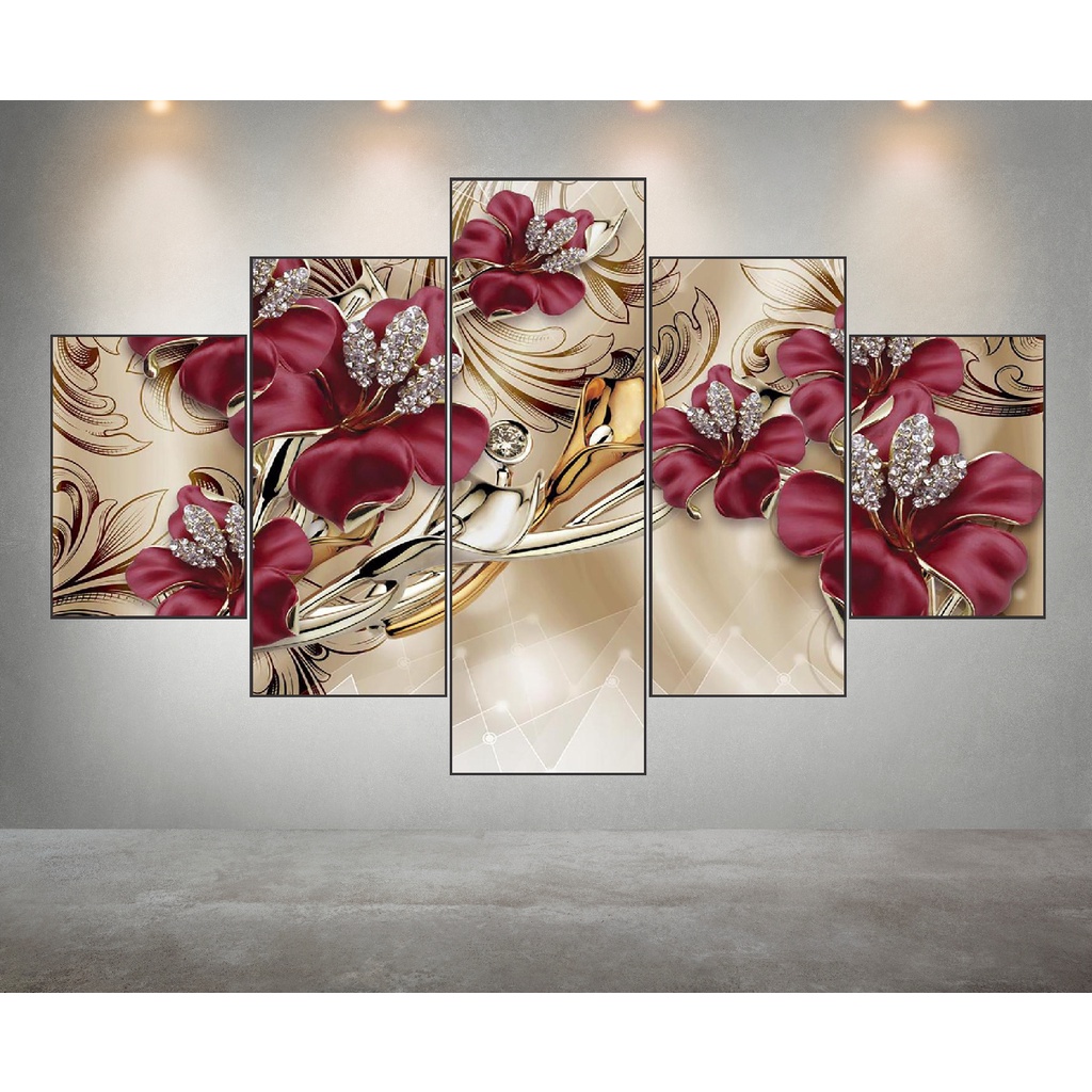 Quadros decorativos 5 peças LINDA flor dourada com bordo sala quarto corredor grande Move