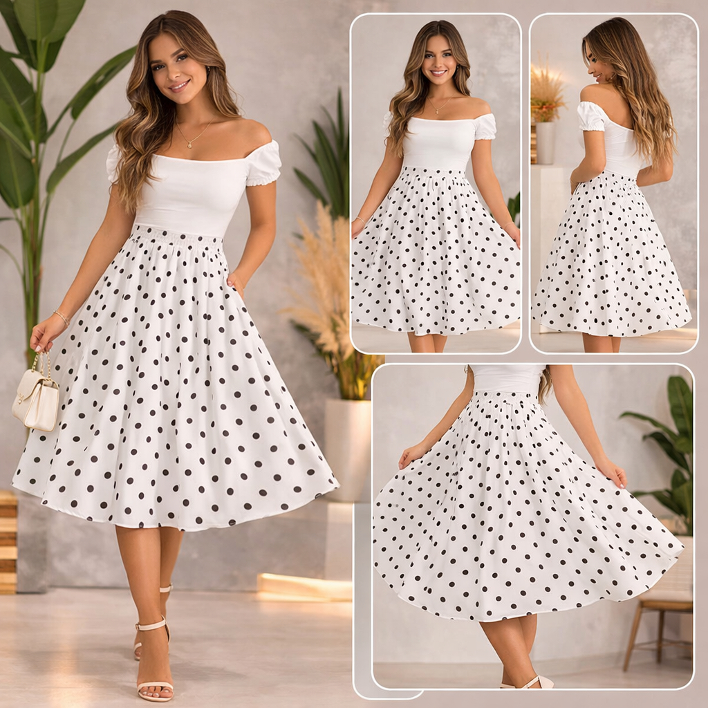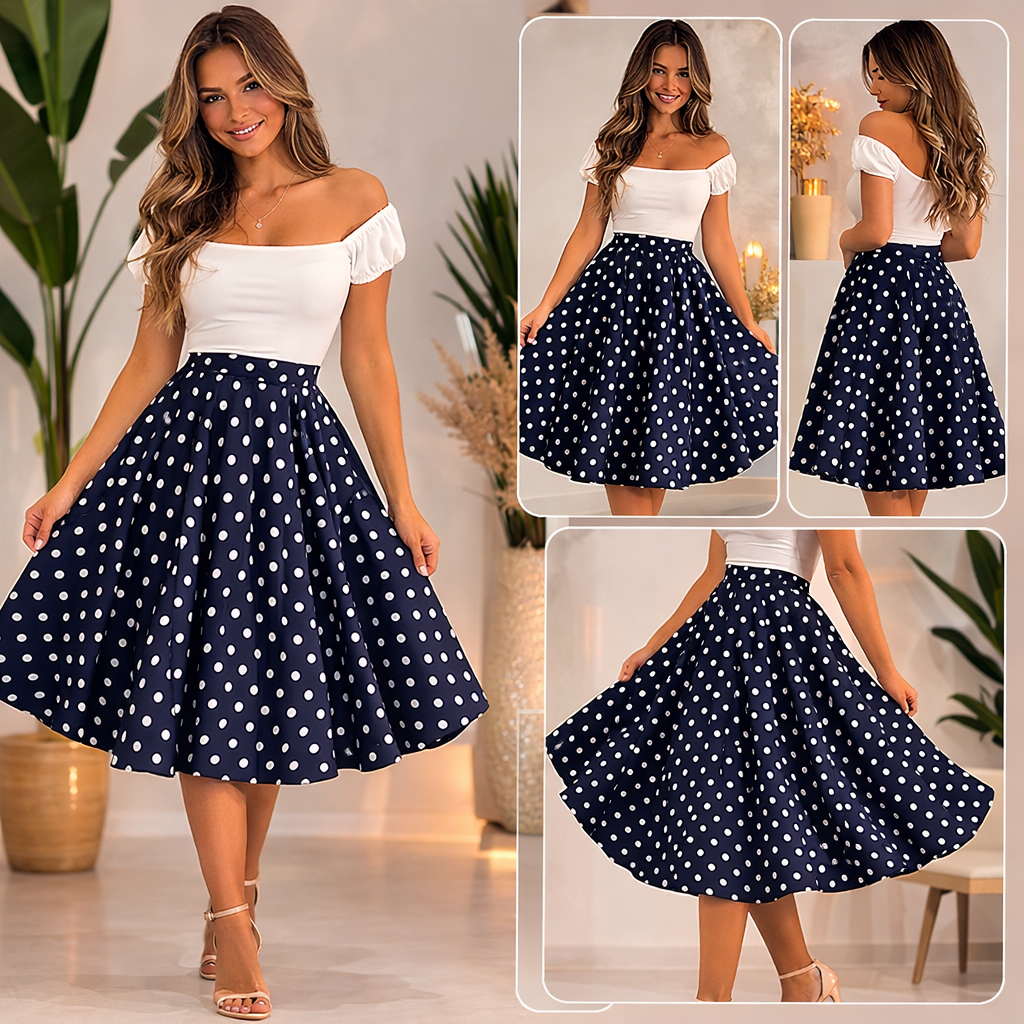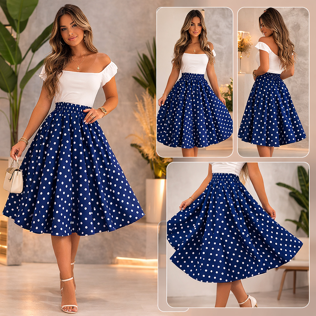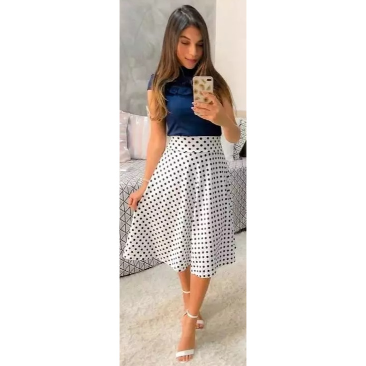Saia Godê Poá Bolinha Retrô Anos 60 Vintage Rodada Midi Moda Feminina Festa Fantasia