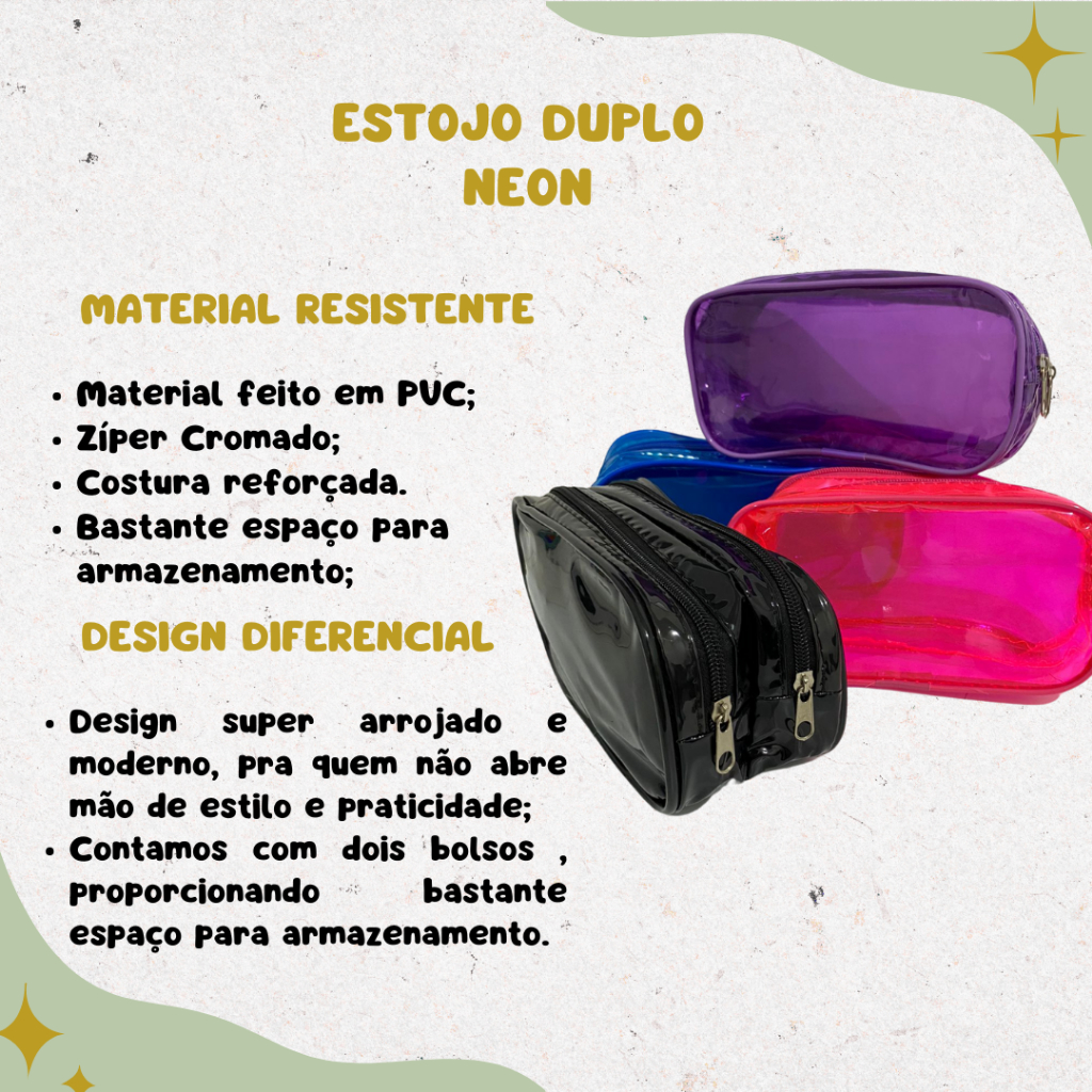 Estojo Duplo Neon Escolar Porta Lápis Penal Infantil Adolescente Adulto