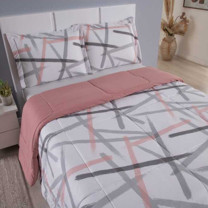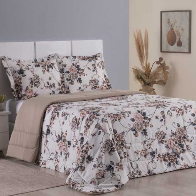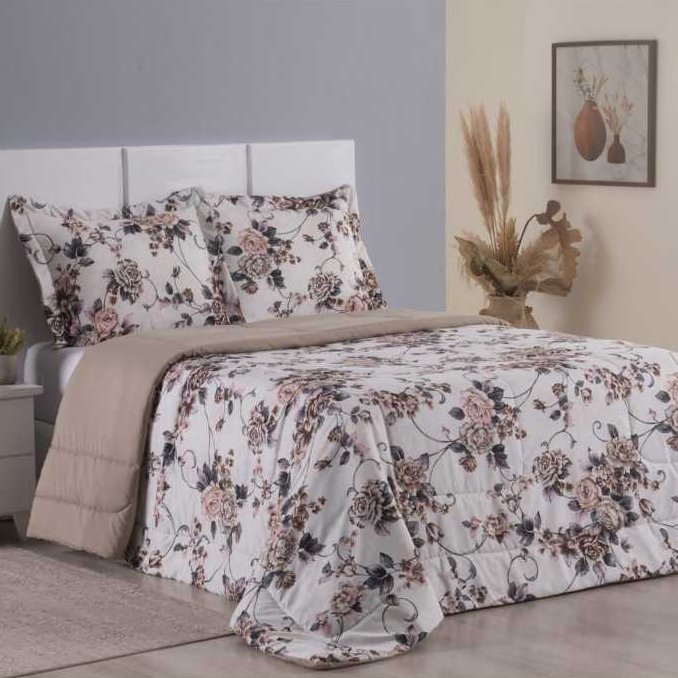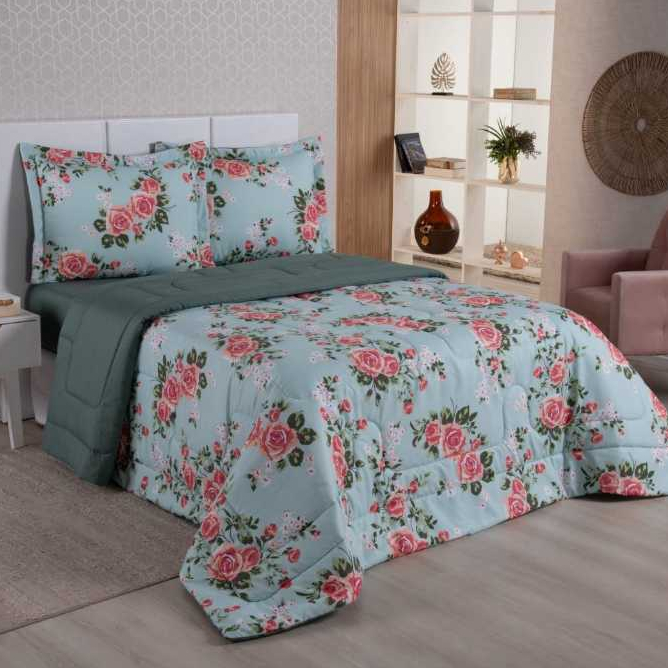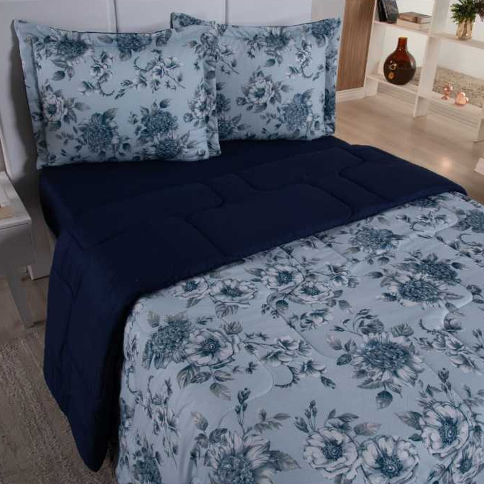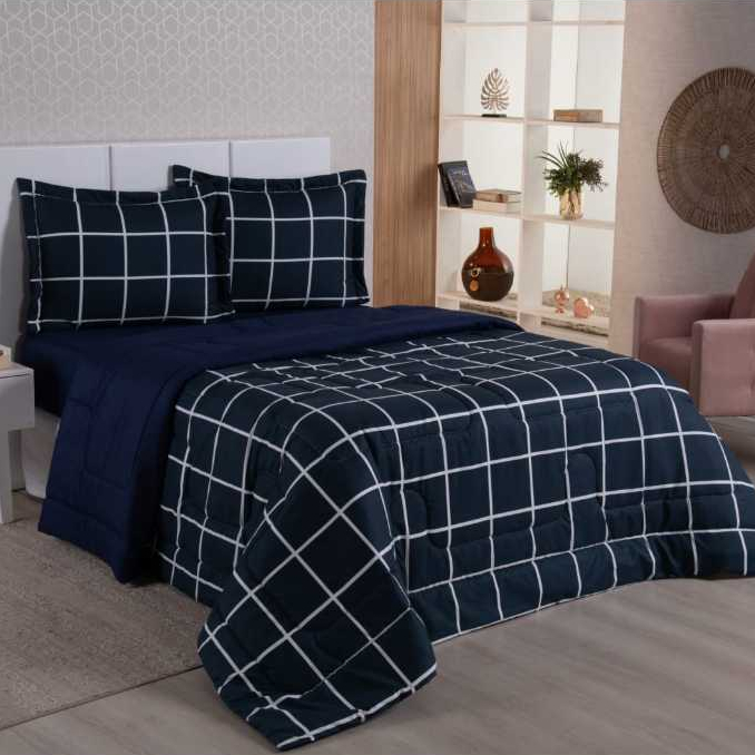 Kit Edredom King Micropercal 400 Fios Cobertor Dupla Face Jogo de Cama Coberta Estampado 3 Peças