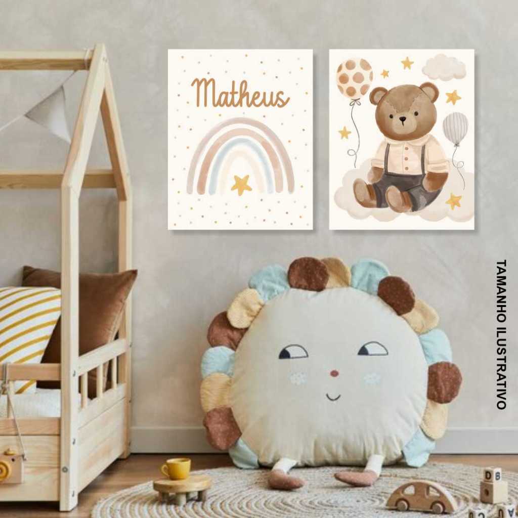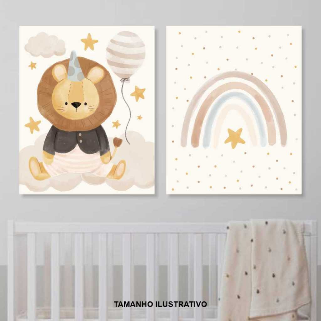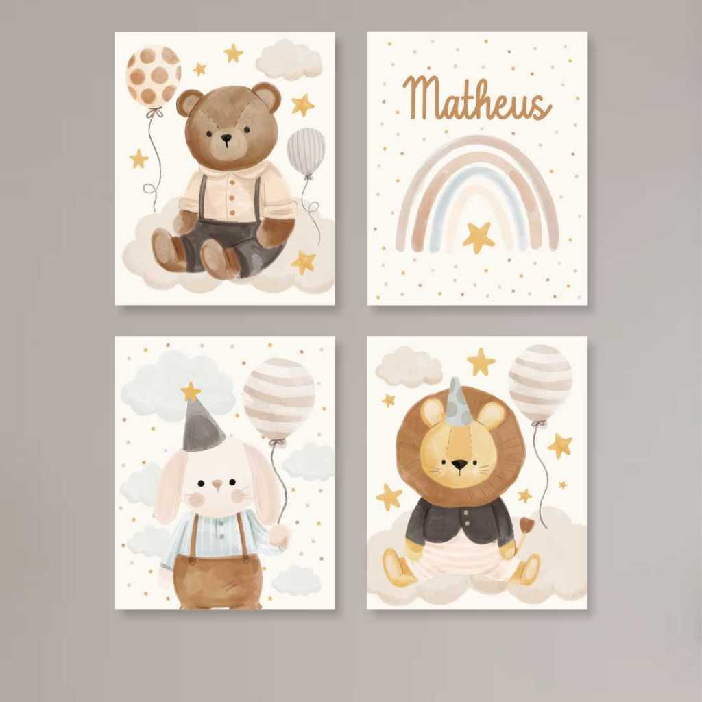 Quadros Decorativos para Quarto de Bebê Aquarela Urso Coelho Leão Decoração Infantil