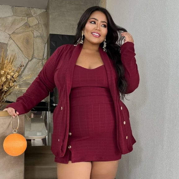 Conjunto 3 peças xadrez short saia casacão e croped Plus Size Tam unico do 46 ao 54