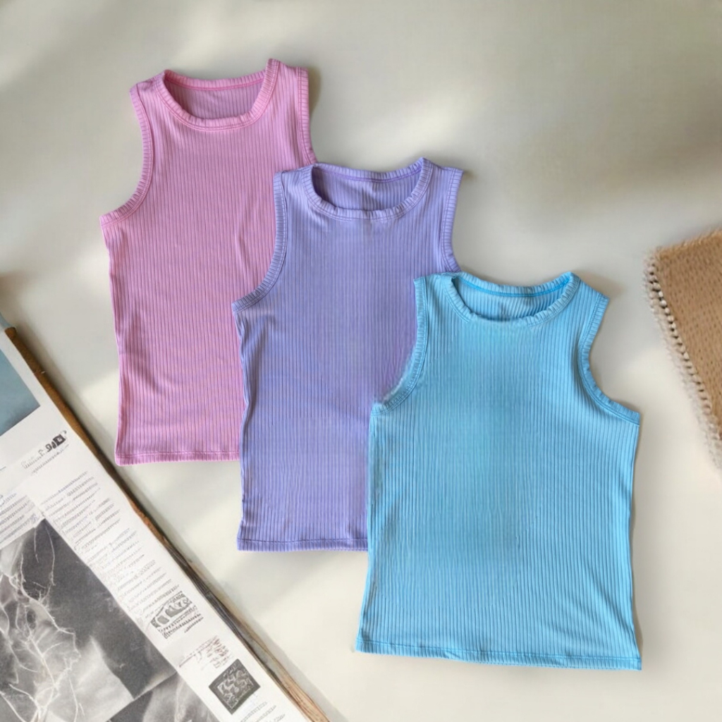 Kit 3 Regata Canelada Básica Blusinha Gringa Feminina Tendência Verão Sem Manga Blusa Camiseta