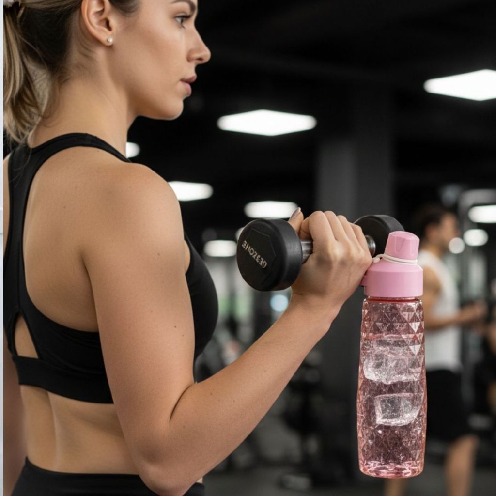 Garrafa De Água Squeeze Academia 600ml Plástico Neon Rosa Escola Resistente com Tampa Multiuso