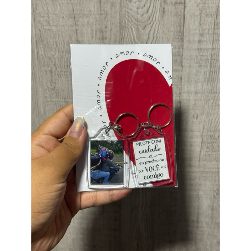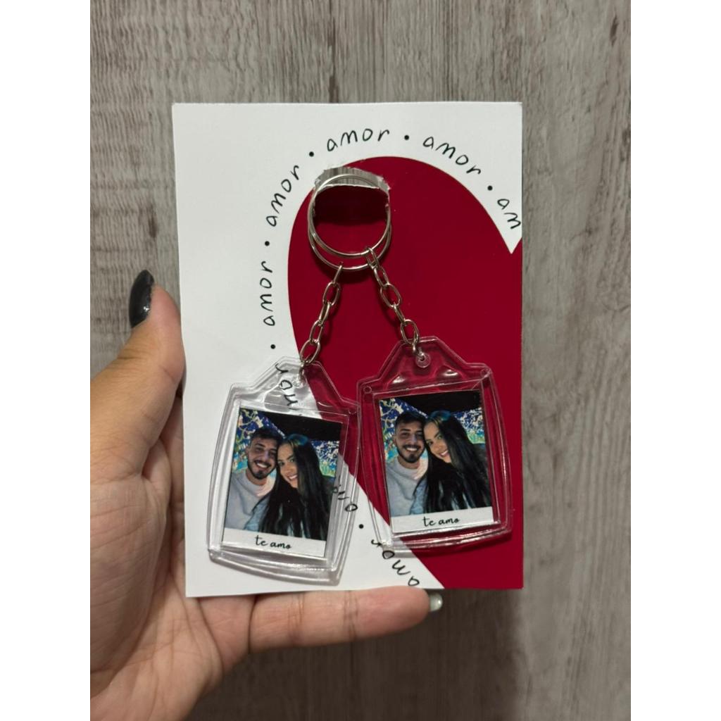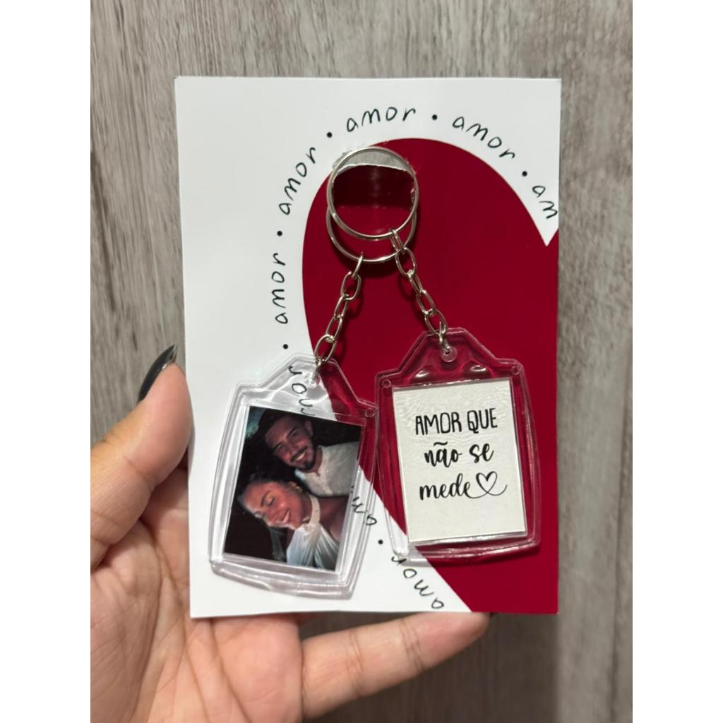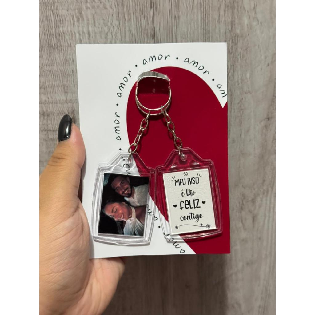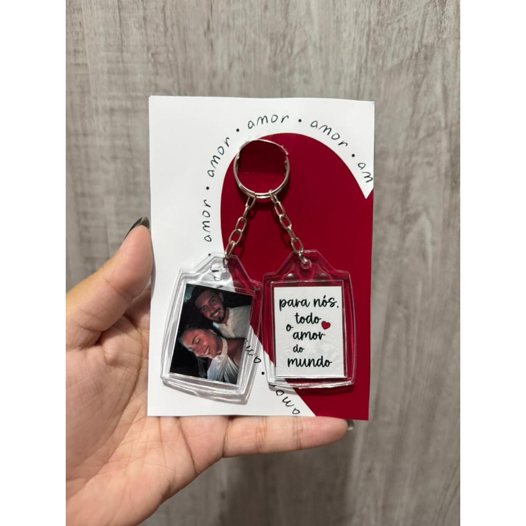 Chaveiro personalizado frente e verso, sua foto de um lado a arte do outro