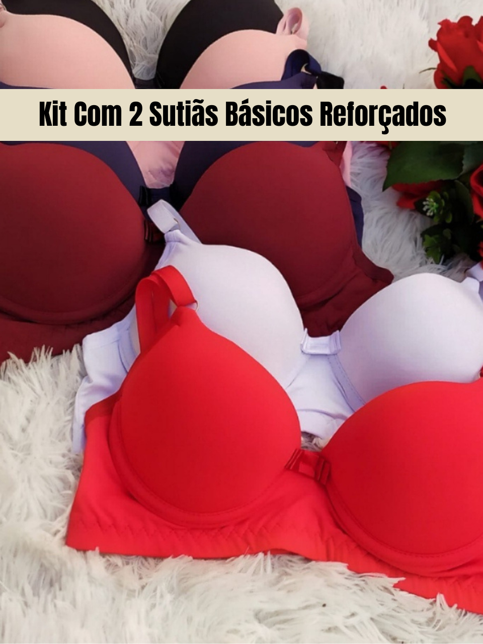 Kit Com 2 Sutiãs Básicos Reforçados Microfibra com Bojo Direto da Fábrica Tamanhos P ao GG - Sutien