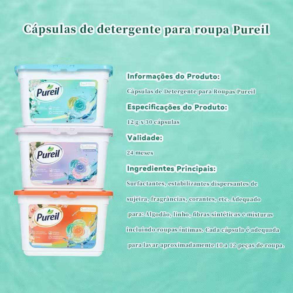 Detergente 5 em 1 Cápsulas de Lavagem 30un Lava Roupas Remove Manchas Dissolve em Água Fria
