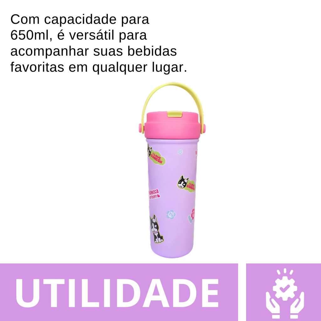 Garrafa Térmica De 650ml Rebecca Bonbon Aço Inox Ideal Quente/ Frio Com Filtro e Alça Dois Modos De Beber Juvenil Clio