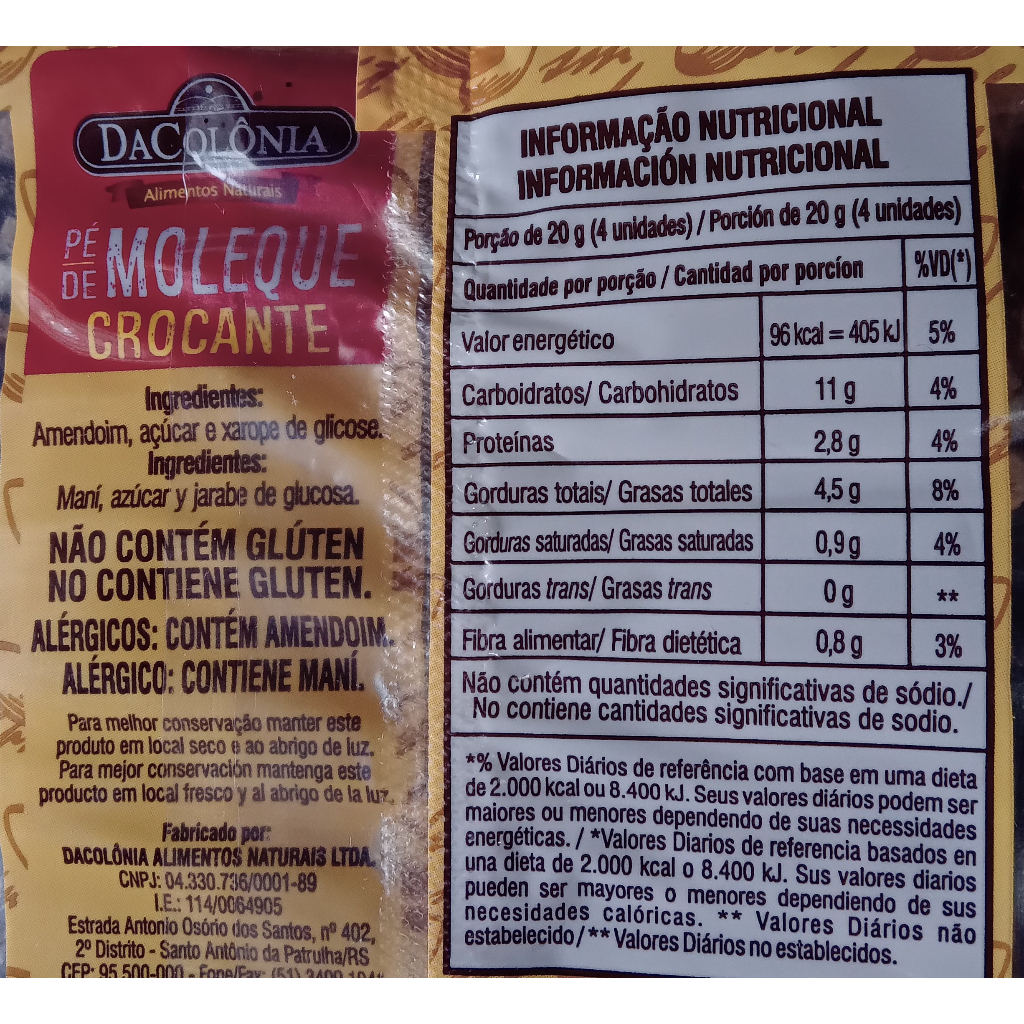 Kit de Pé de Moleque Crocante com 6 pacotes de 140g cada - Sem Glúten - DaColônia