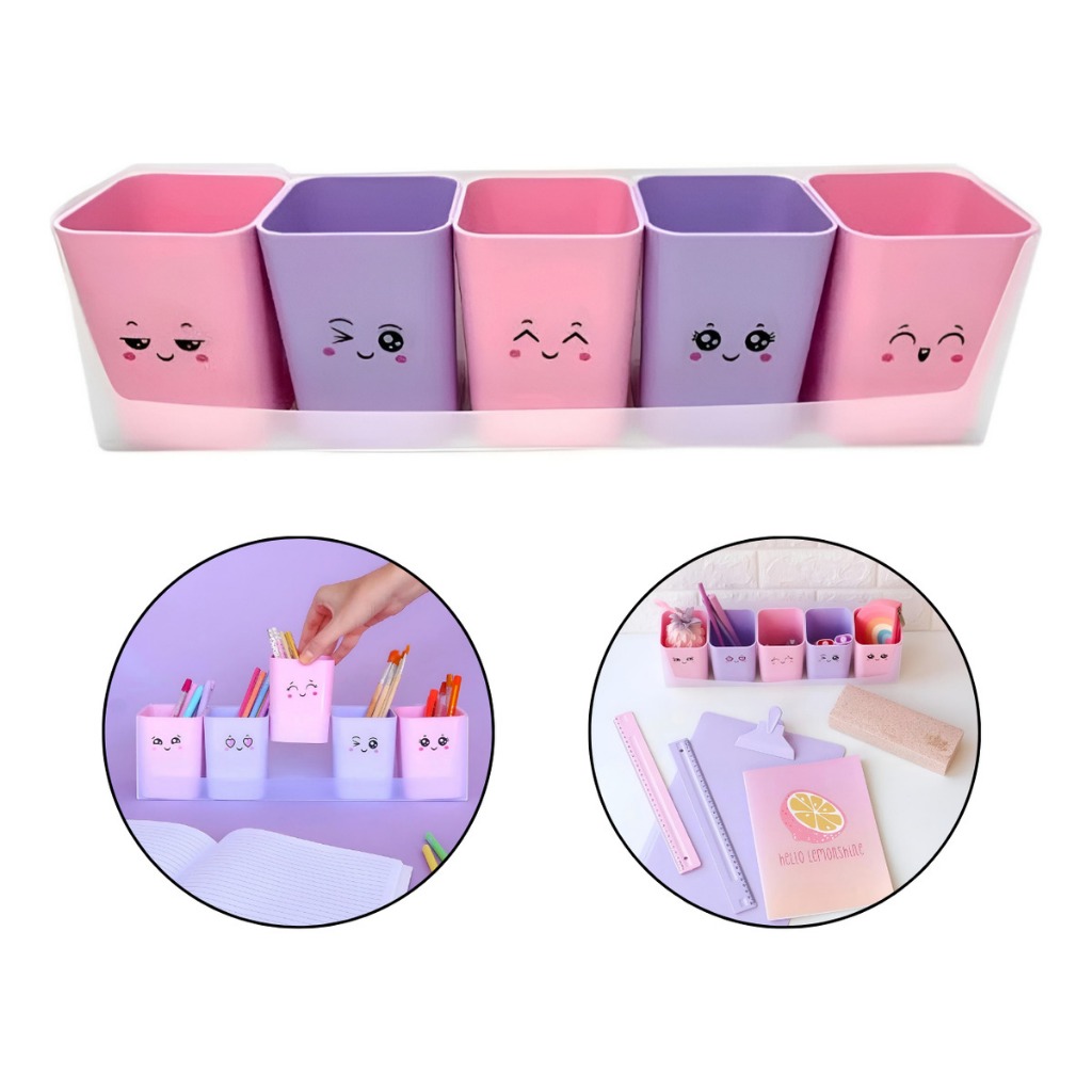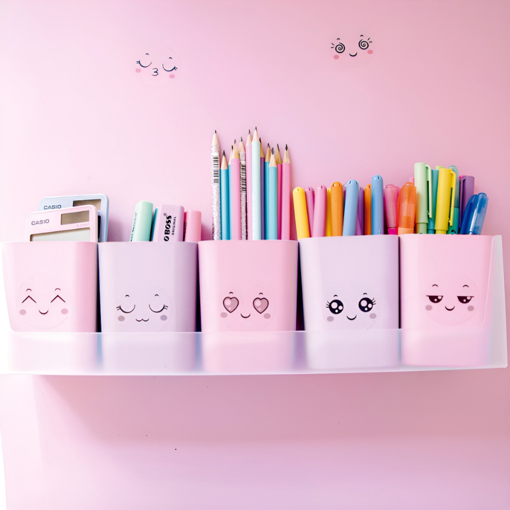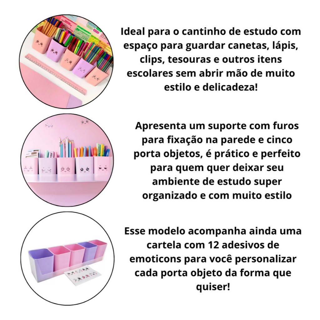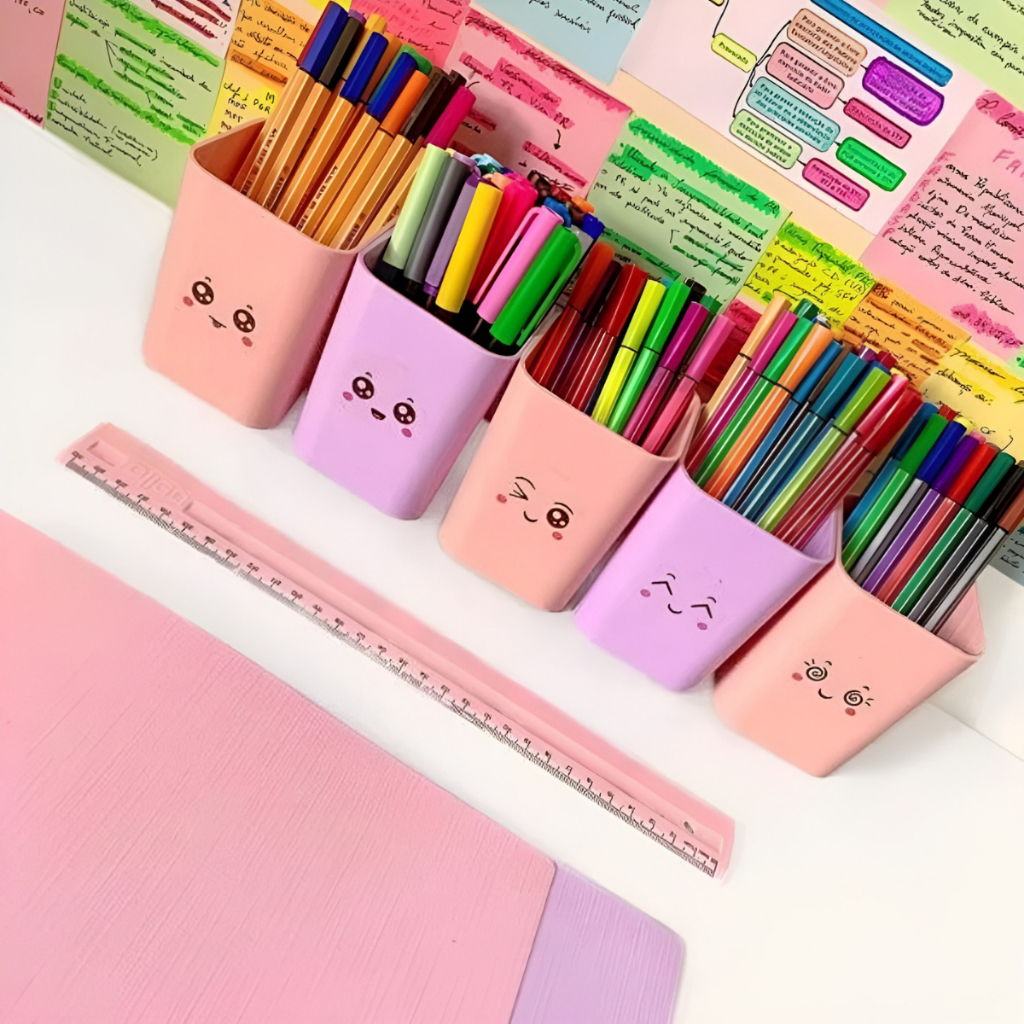 Porta Caneta Organizador Acrílico c/ 12 Adesivos Copo Organizador de Canetas Criativo p/ Escritório