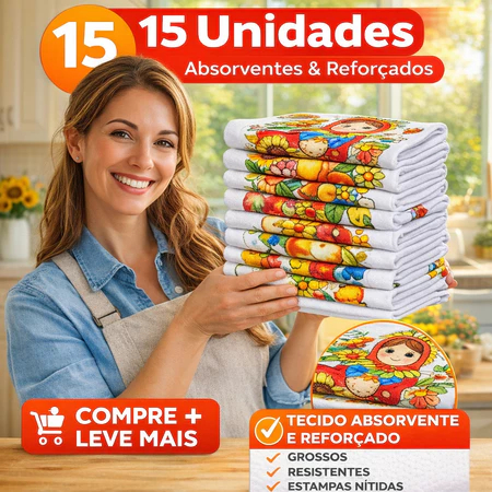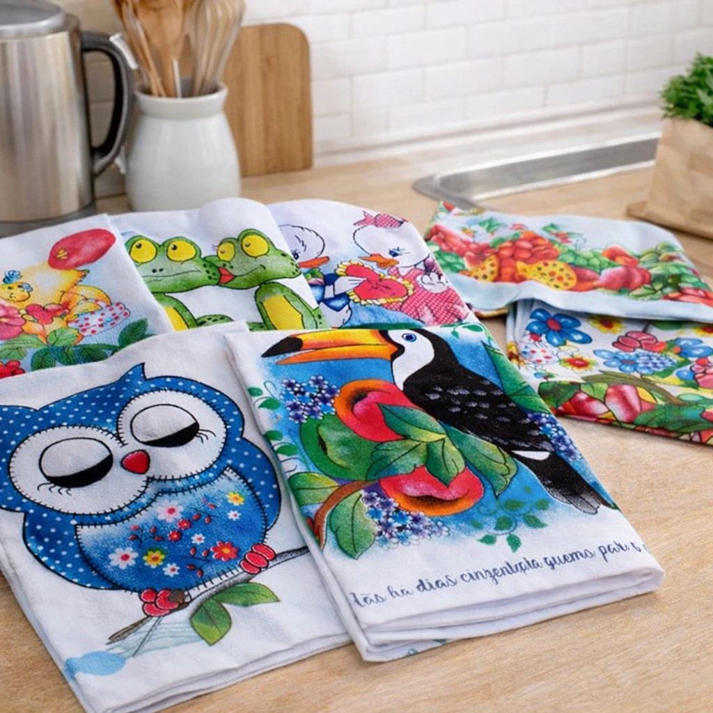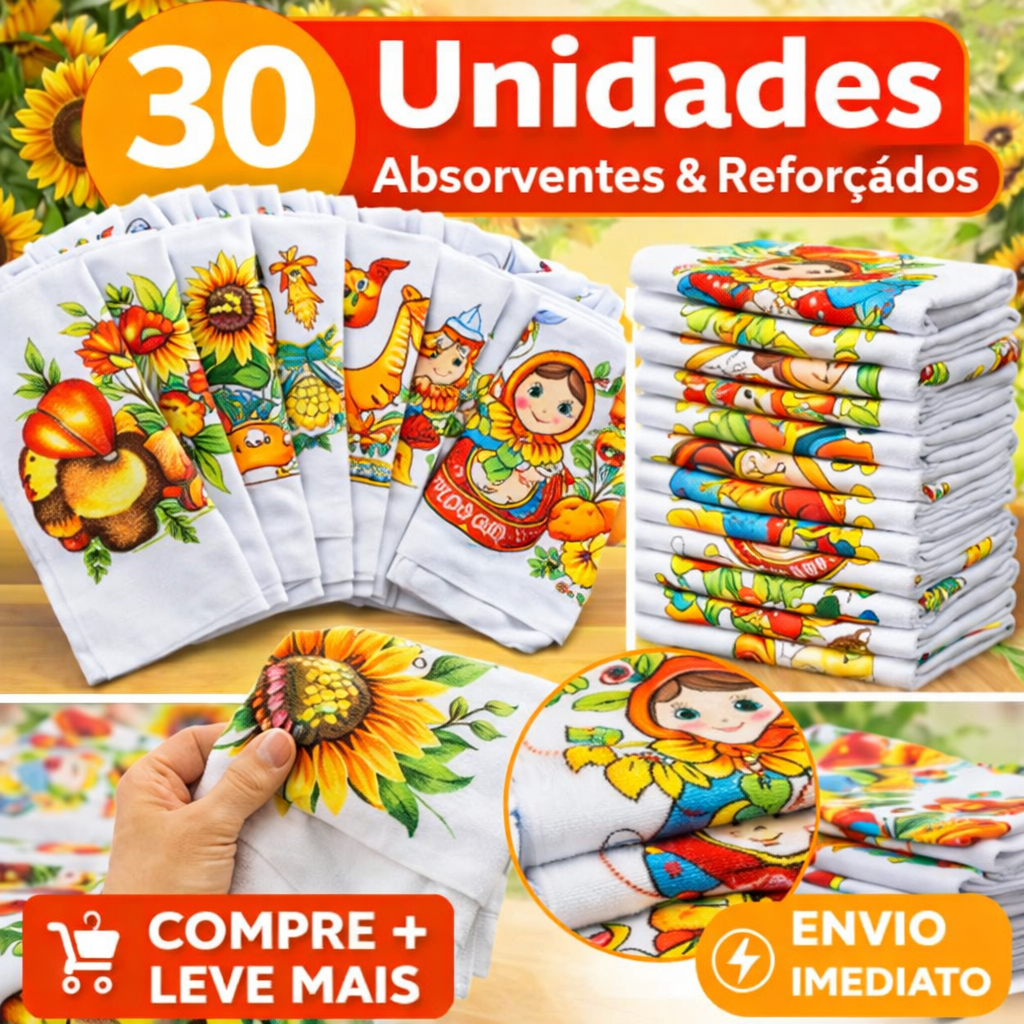Kit 30 Panos de Prato Estampados 100% Algodão com Bainha – Alta Absorção, Estampas Variadas