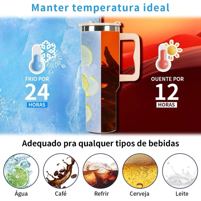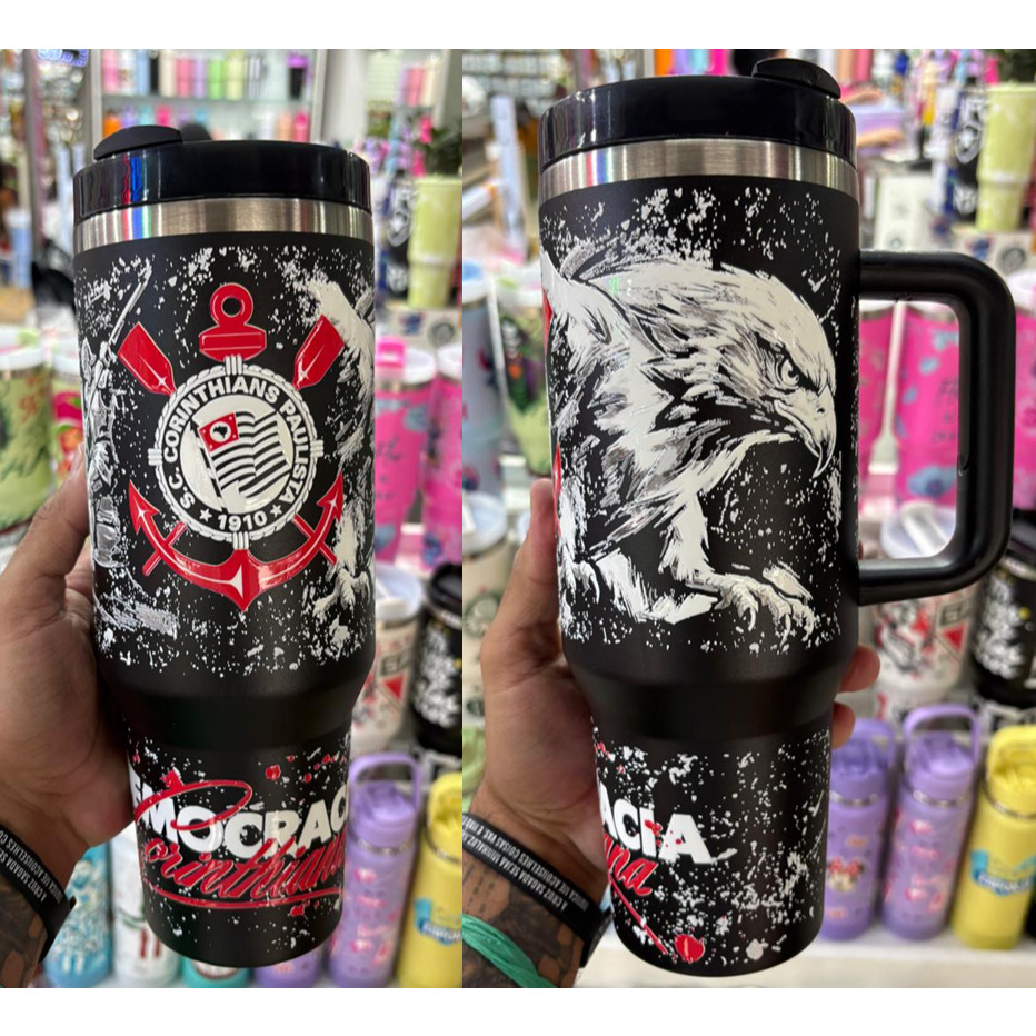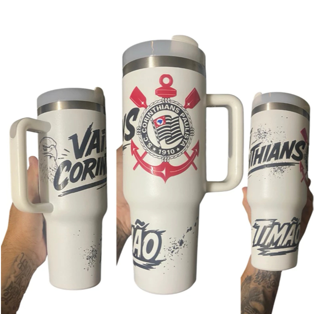 Copo Térmico 1200ml Inox Time Preferido Alto Relevo 3D Tampa Vedada Temperatura Frio/Quente
