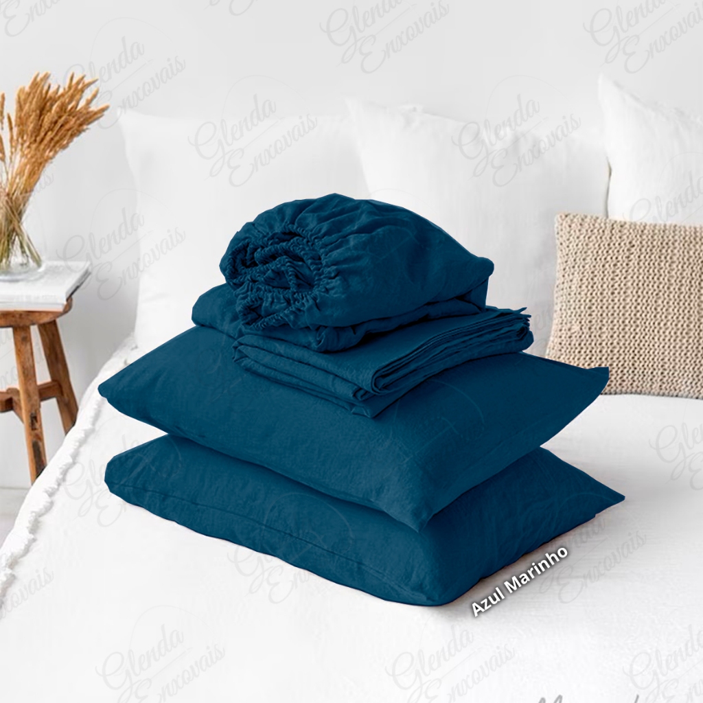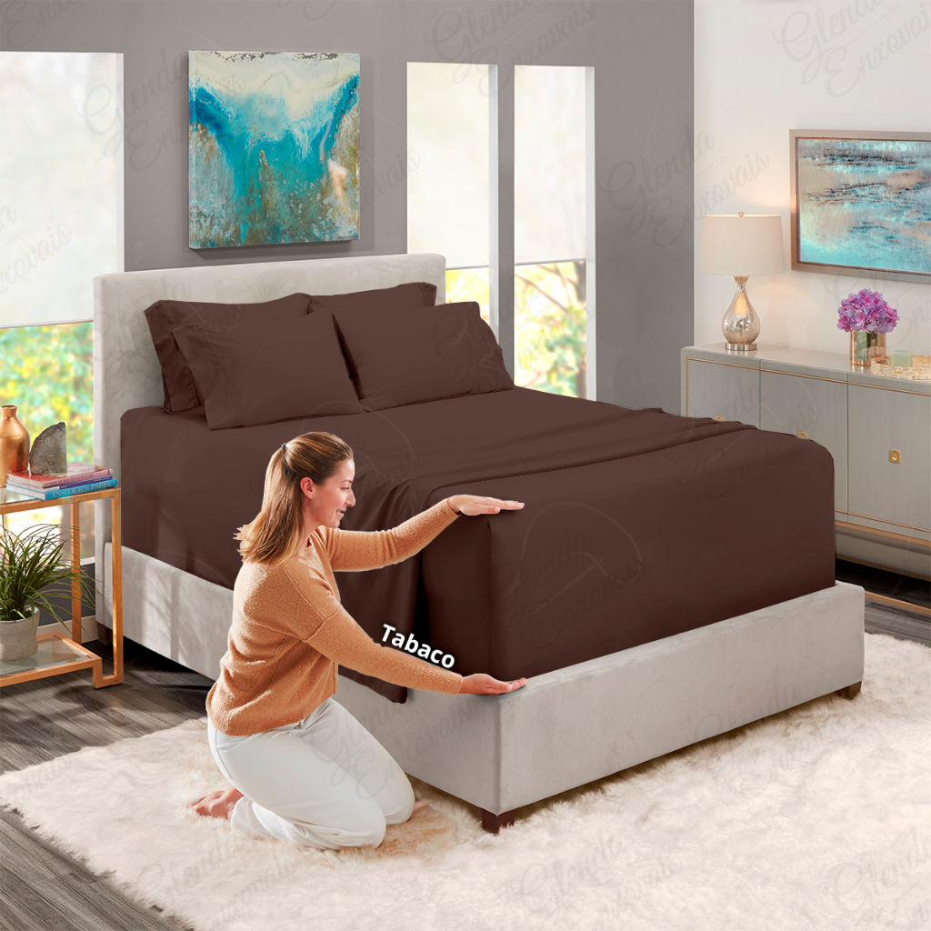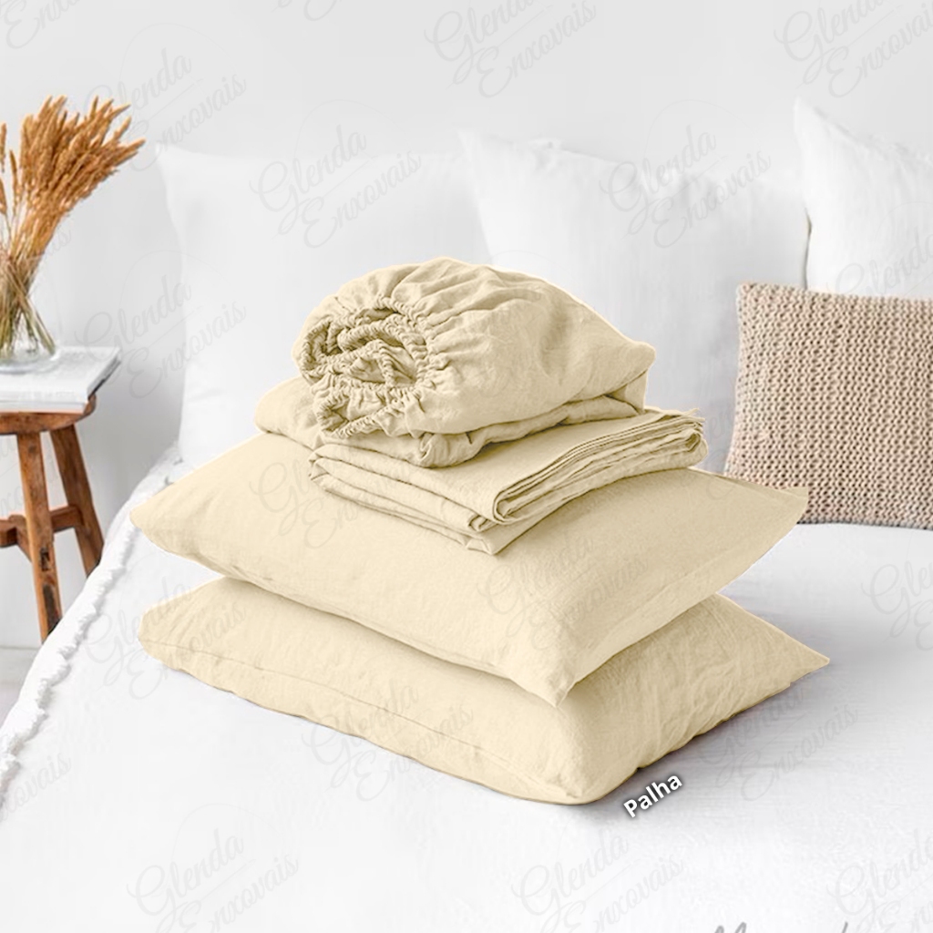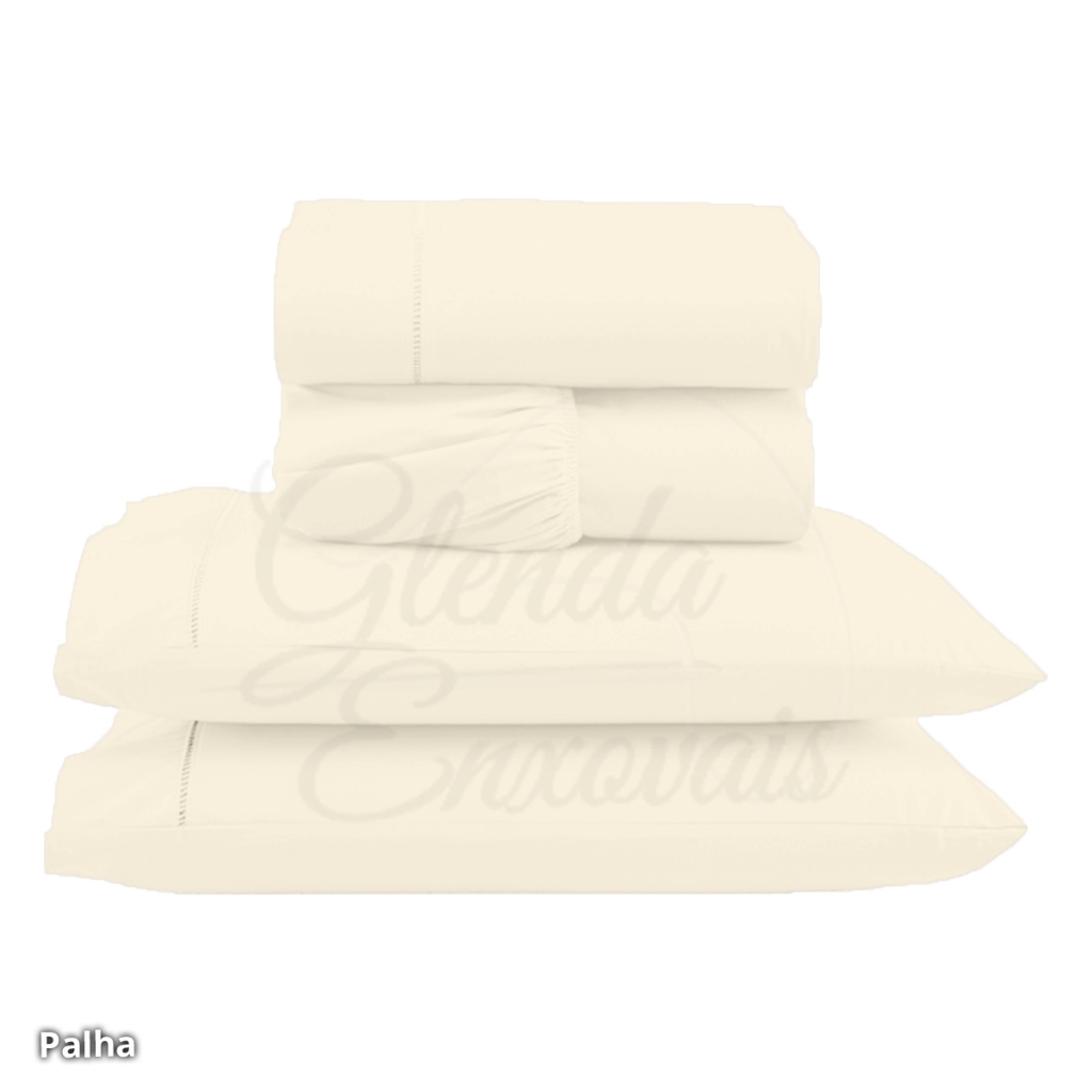 Kit Lençol de Elástico 400 Fios + Fronhas - Detalhe Ponto Palito