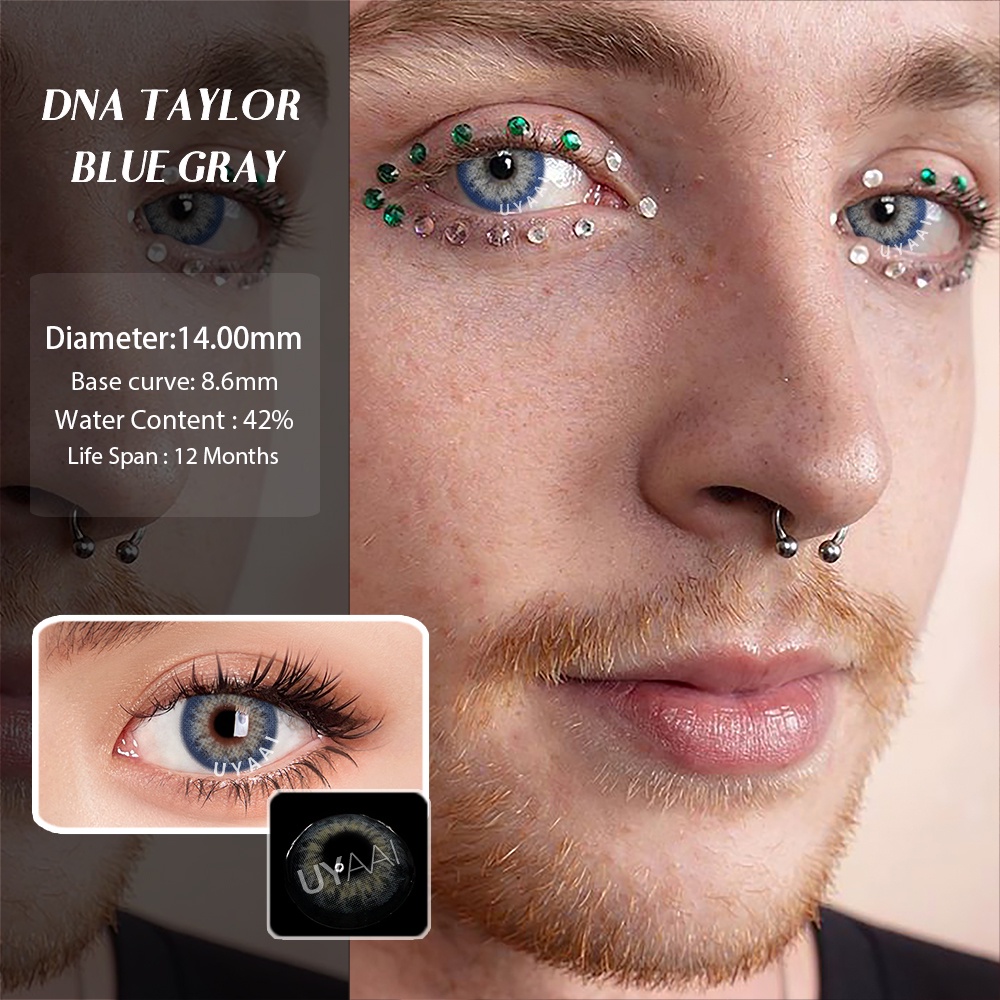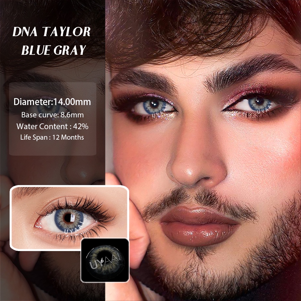 UYAAI Lentes De Contato De Cor Azul 2pcs/Par Macias Naturais