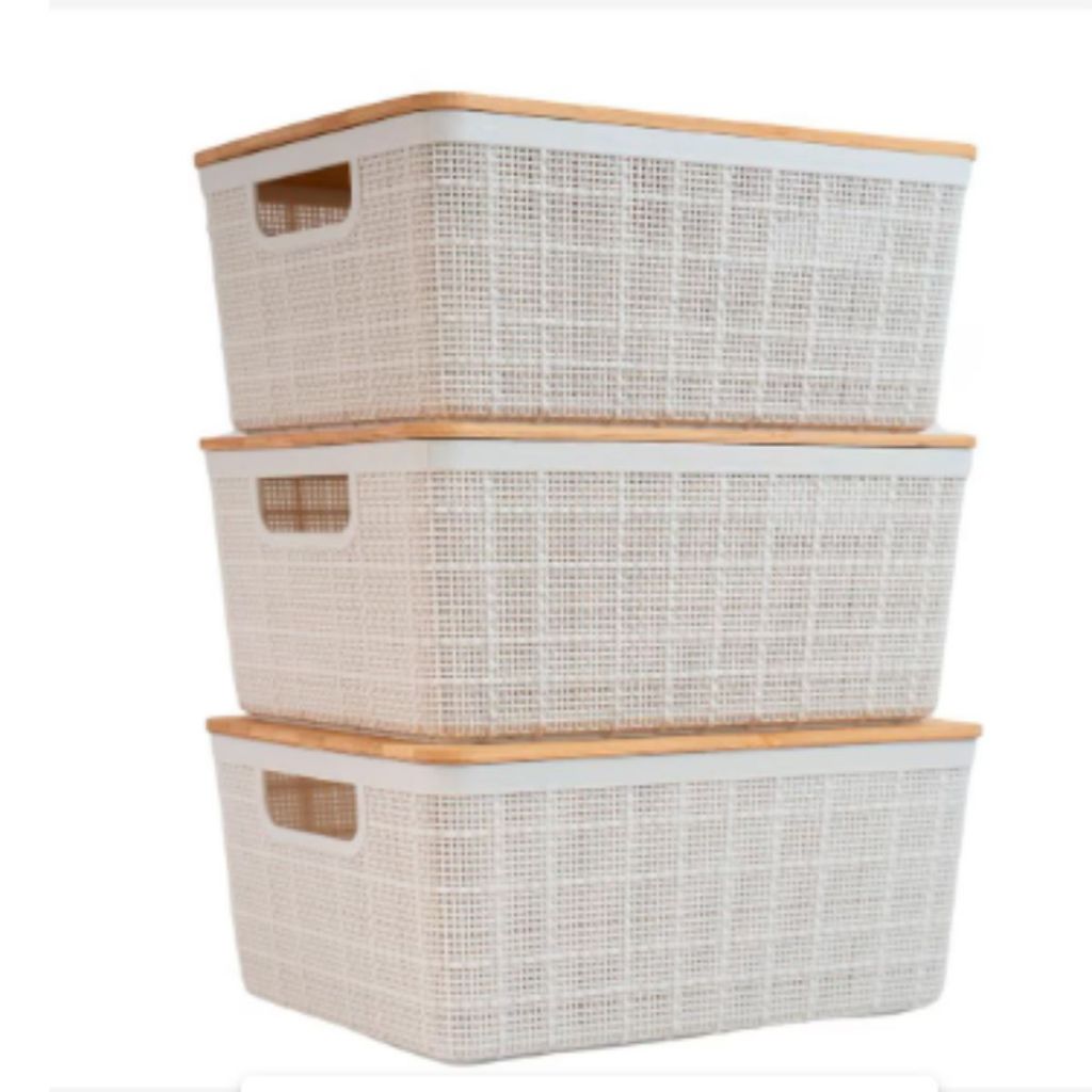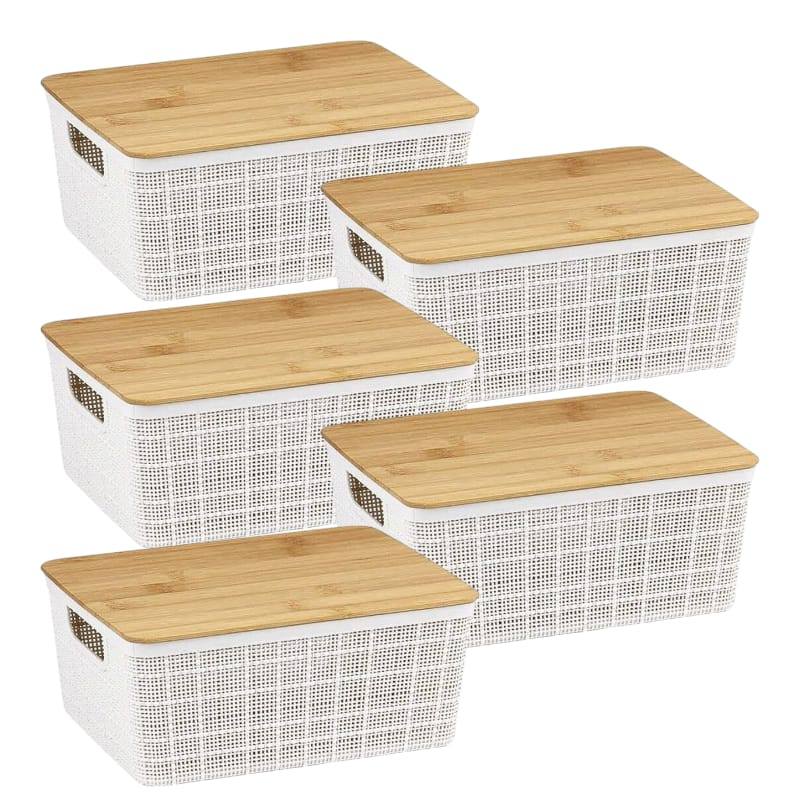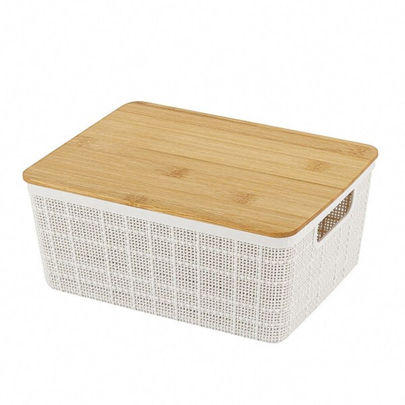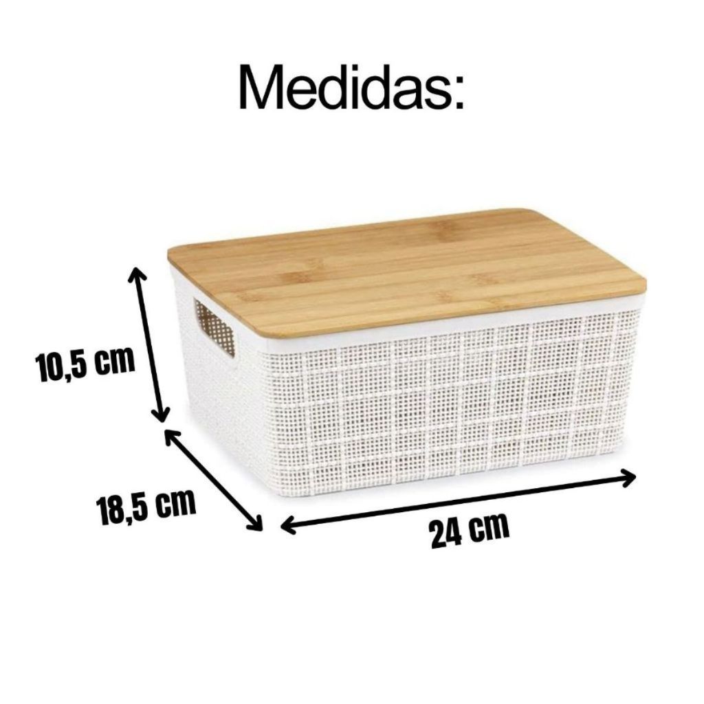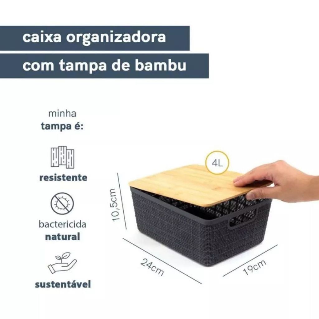 Caixa Organizadora com Tampa de Bambu 4l Oikos Kits Com 2,3,4,5 Empilhável Multiuso Cestas Caixa
