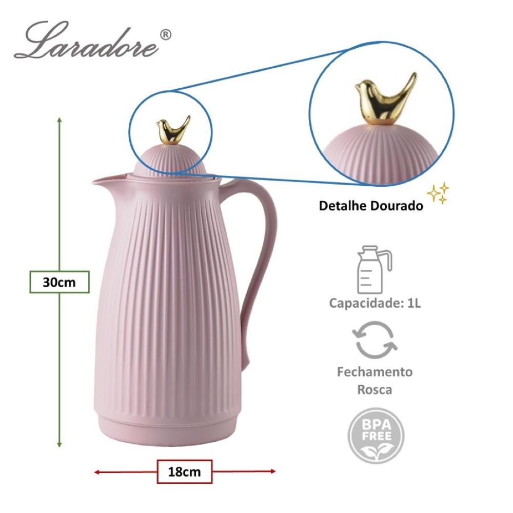 Garrafa Térmica de Café Laradore Bird - Rosa e Dourada (1L)
