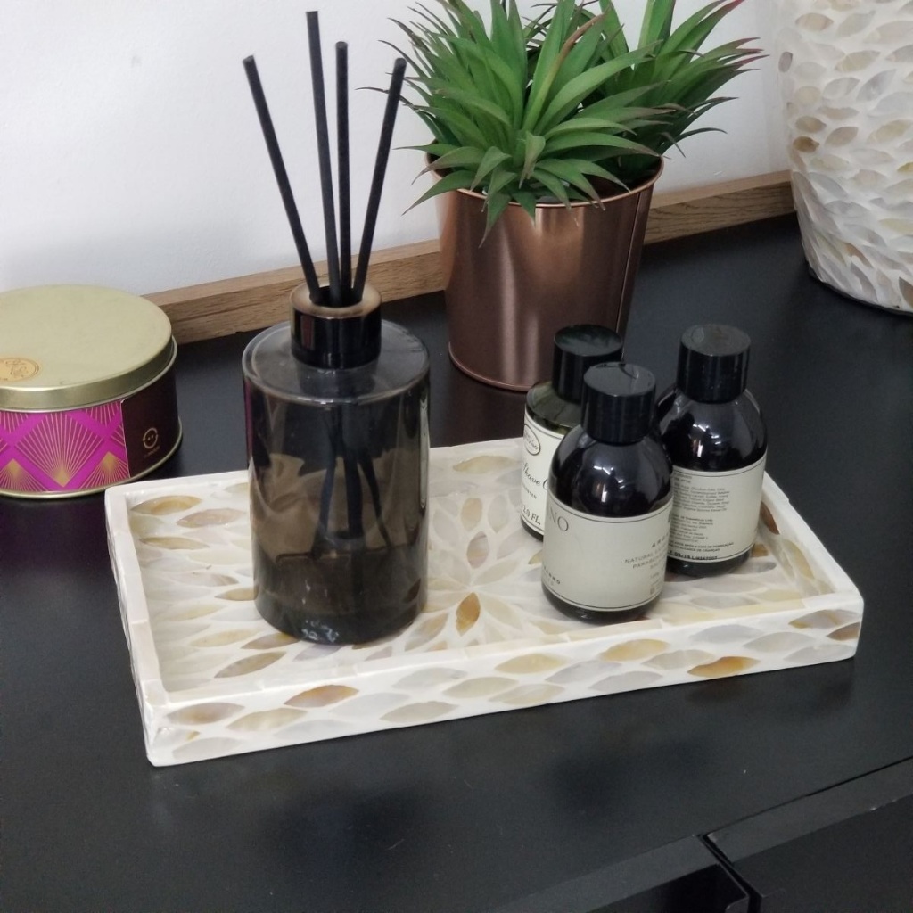 Bandeja Decorativa Retangular Média de Madrepérola 26x14cm