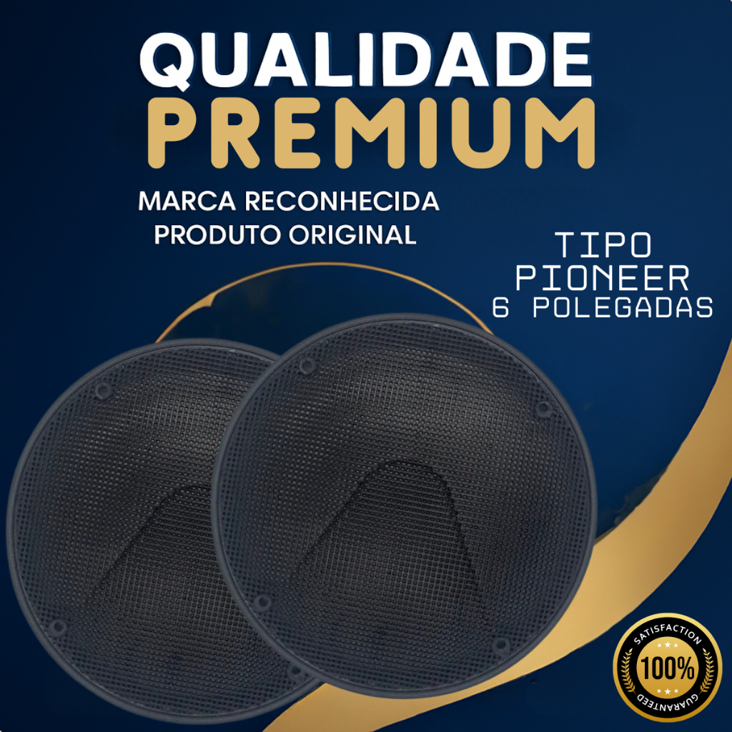 Tela Alto Falante 6 Polegadas Tipo Pioneer Par Grade de Proteção Automotiva Redonda Plastico Preta