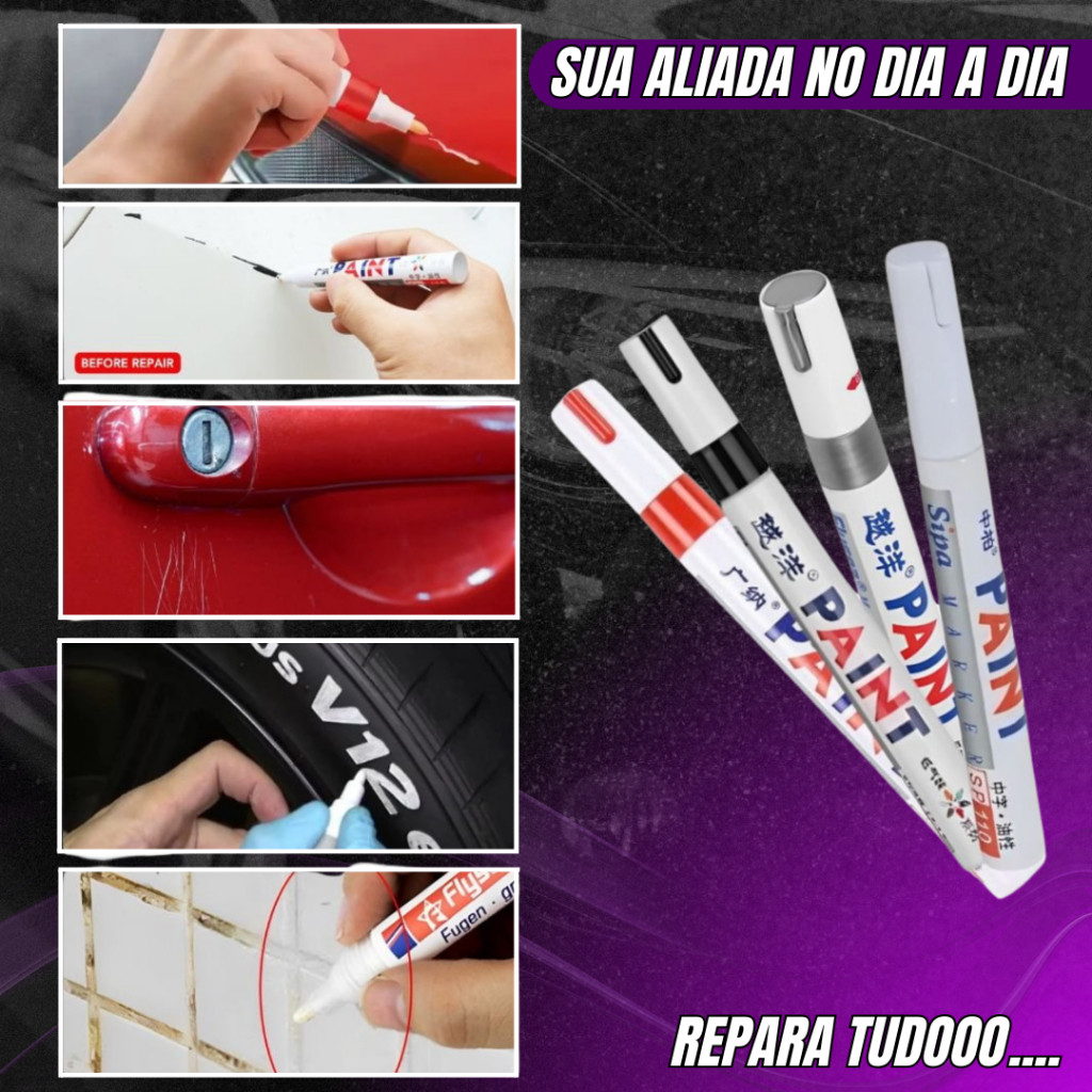 Caneta Para Riscos Carro Moto Arranhões Riscados Pintura Automotiva Permanente Retoque em Pneus