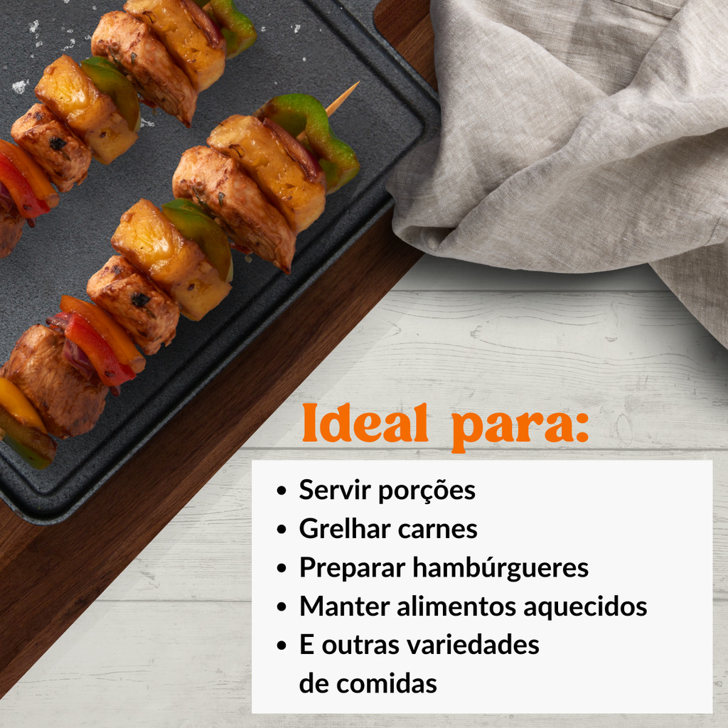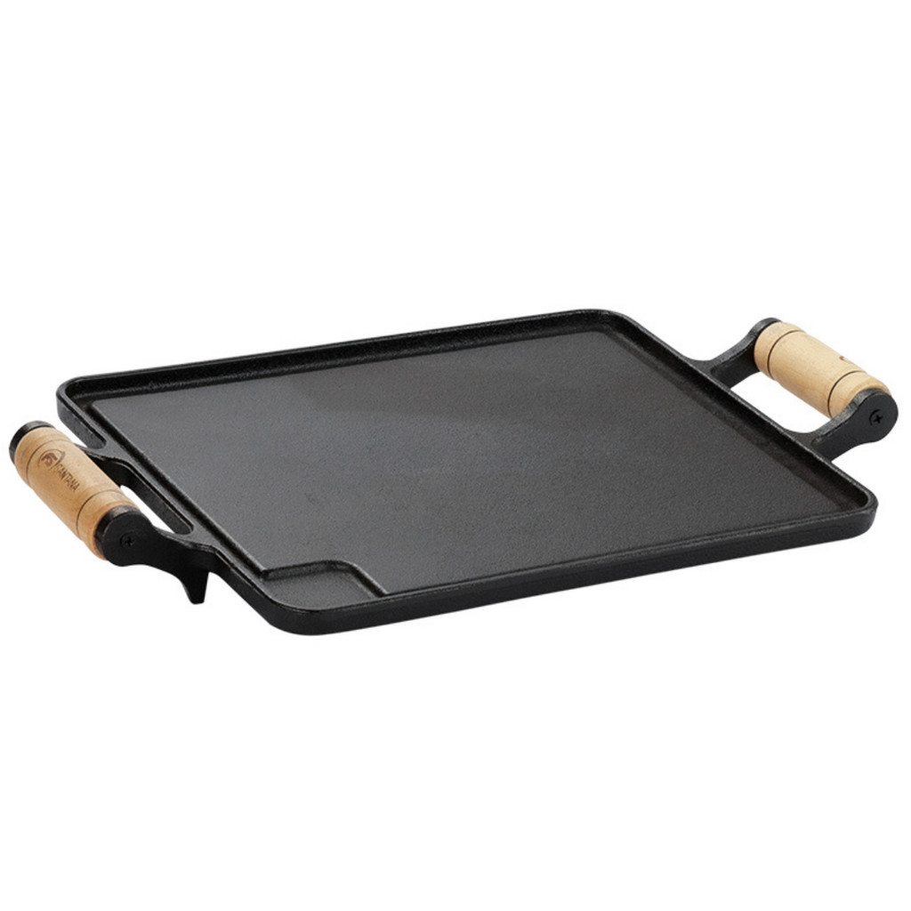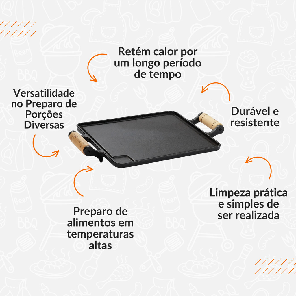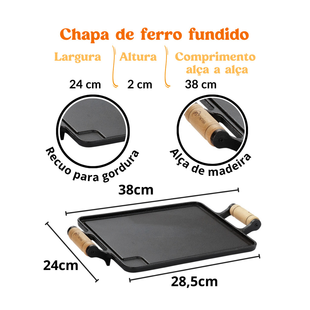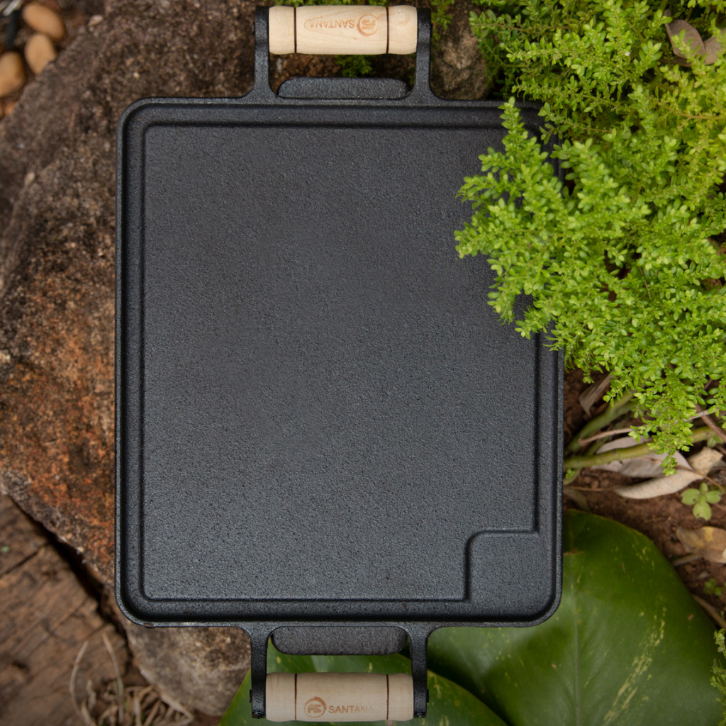 Chapa De Ferro Fundido Bifeteira 38x24 Com 2 Alças De Madeira Santana