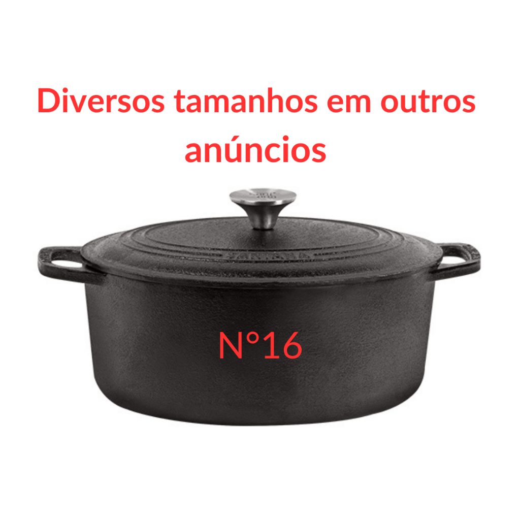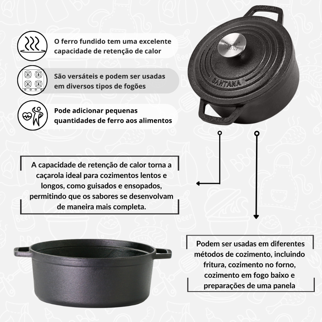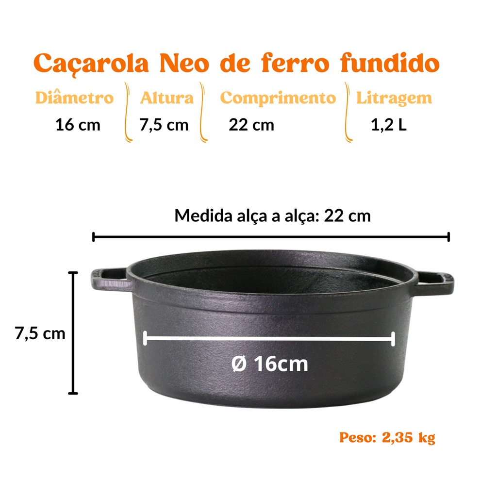 Panela De Ferro Fundido Caçarola NEO Com Alça e Tampa De Ferro 1,2L N°16 Santana