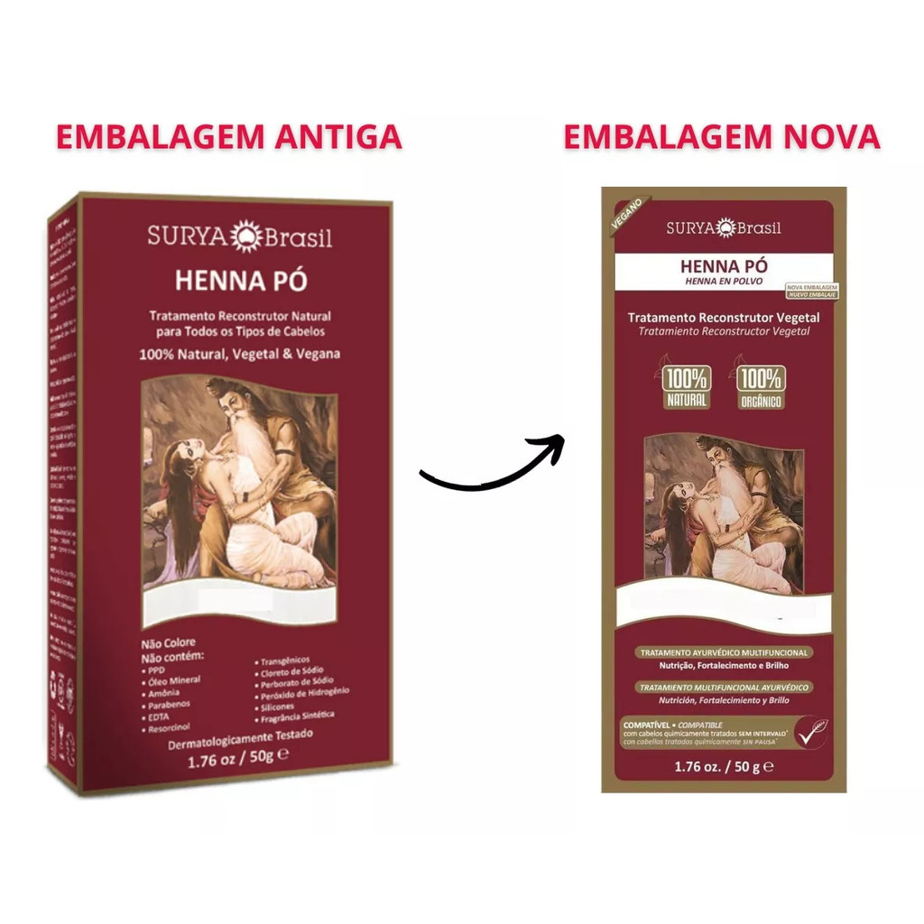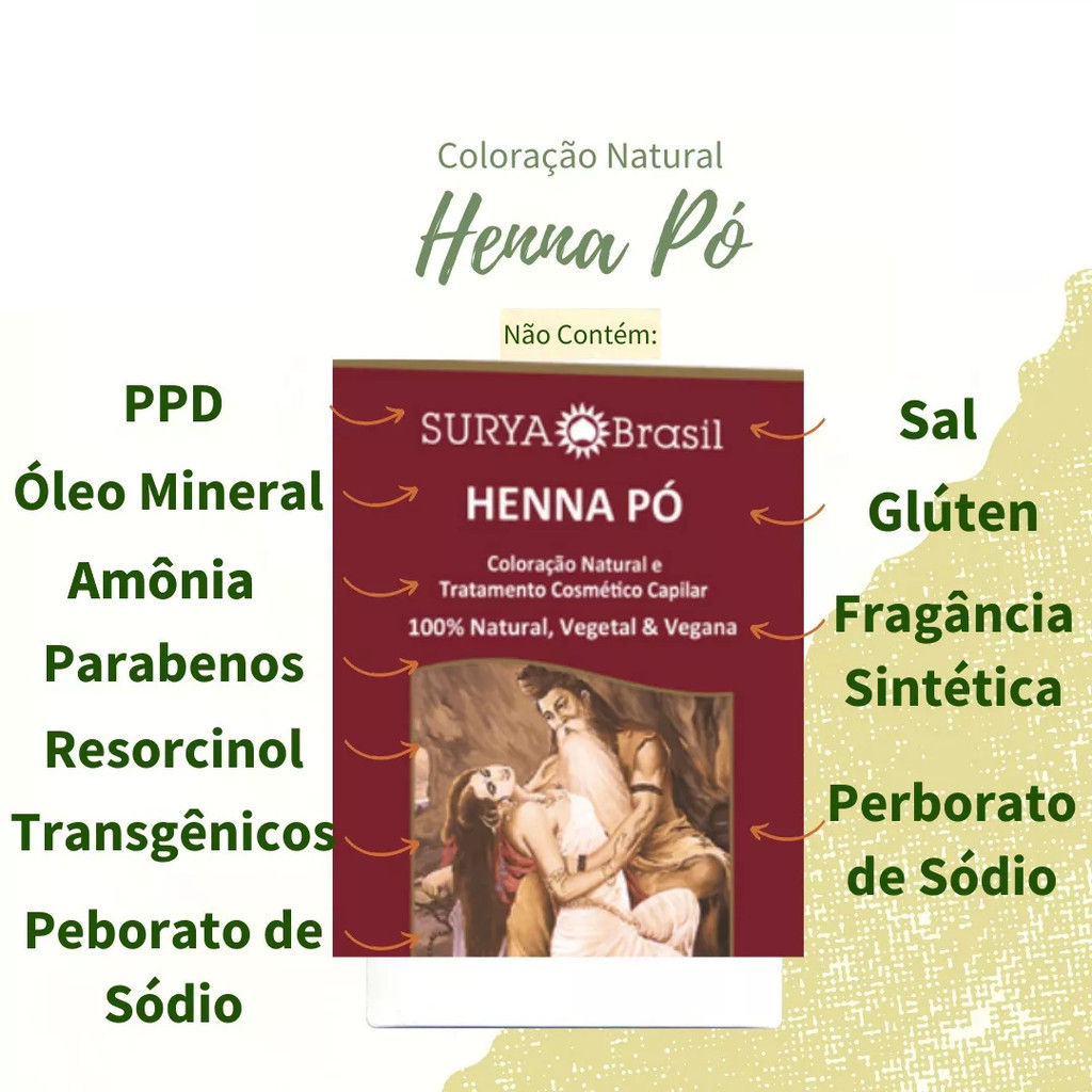 Tintura Natural Vegana Henna Pó Surya Coloração Escolha Cor