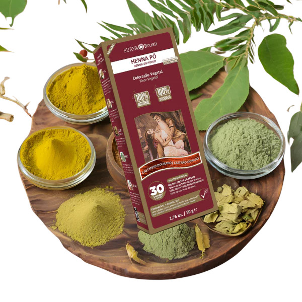 Tintura Natural Vegana Henna Pó Surya Castanho Dourado