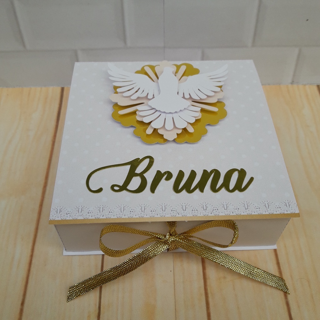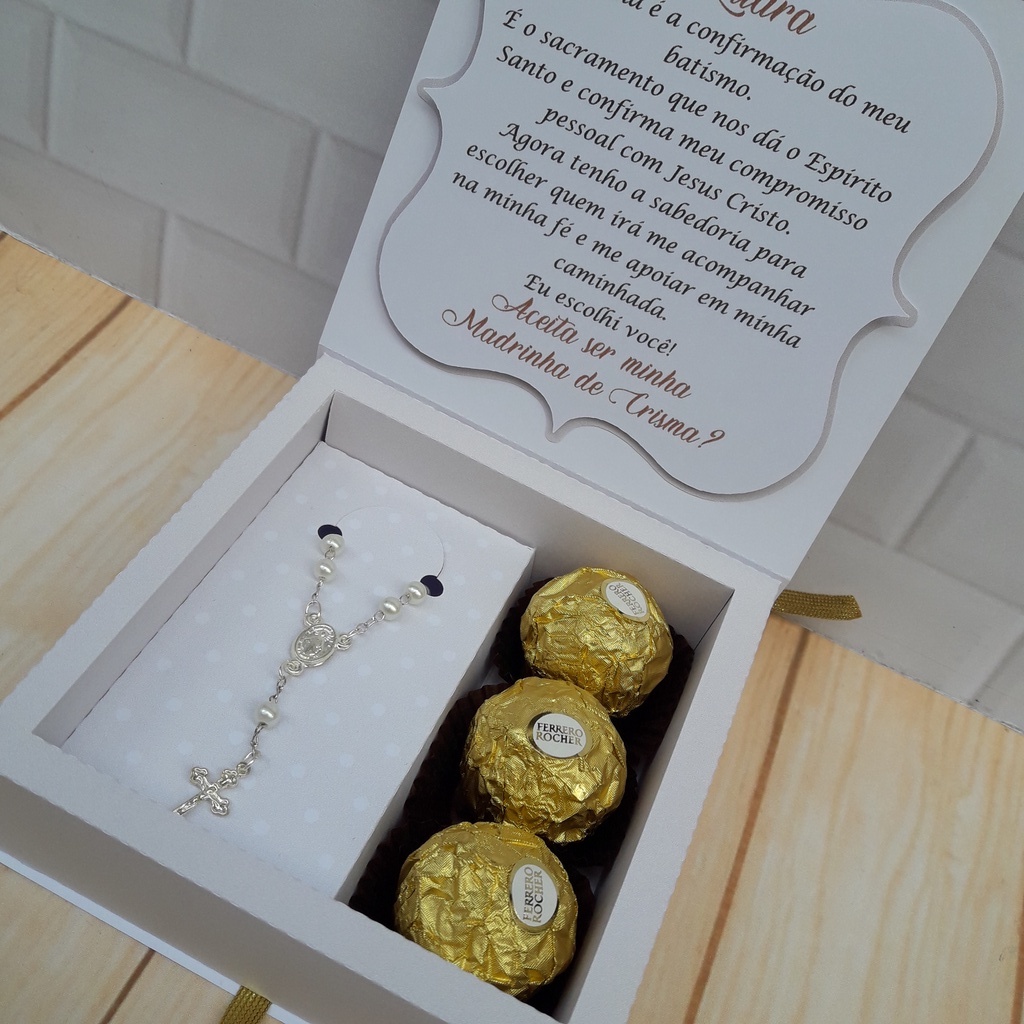 Convite Crisma Padrinho/Madrinha c/ Terço, detalhes Dourado e Laço – Personalizado