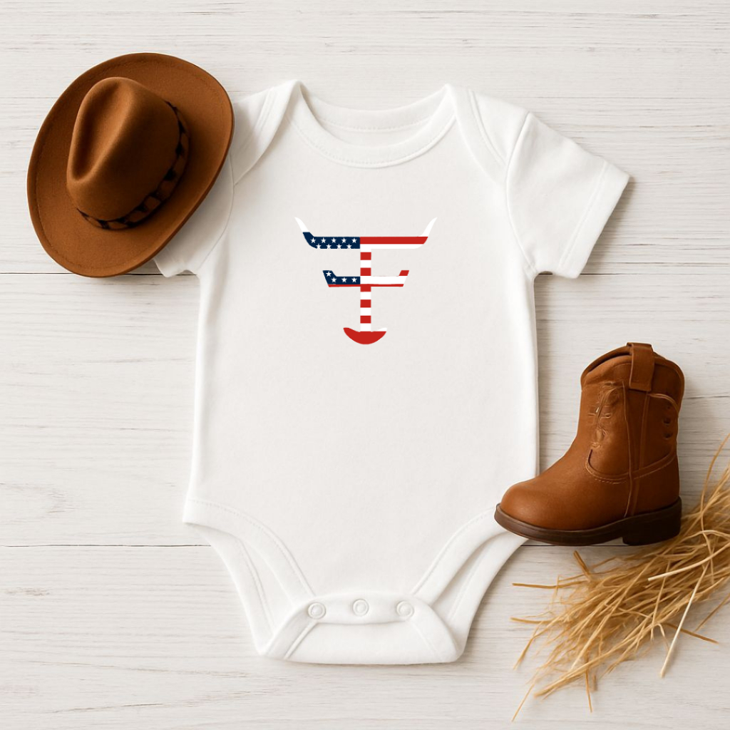 Body Bebe Logo Usa Cores doa Bandeira Texas Moda Country Manga Curta