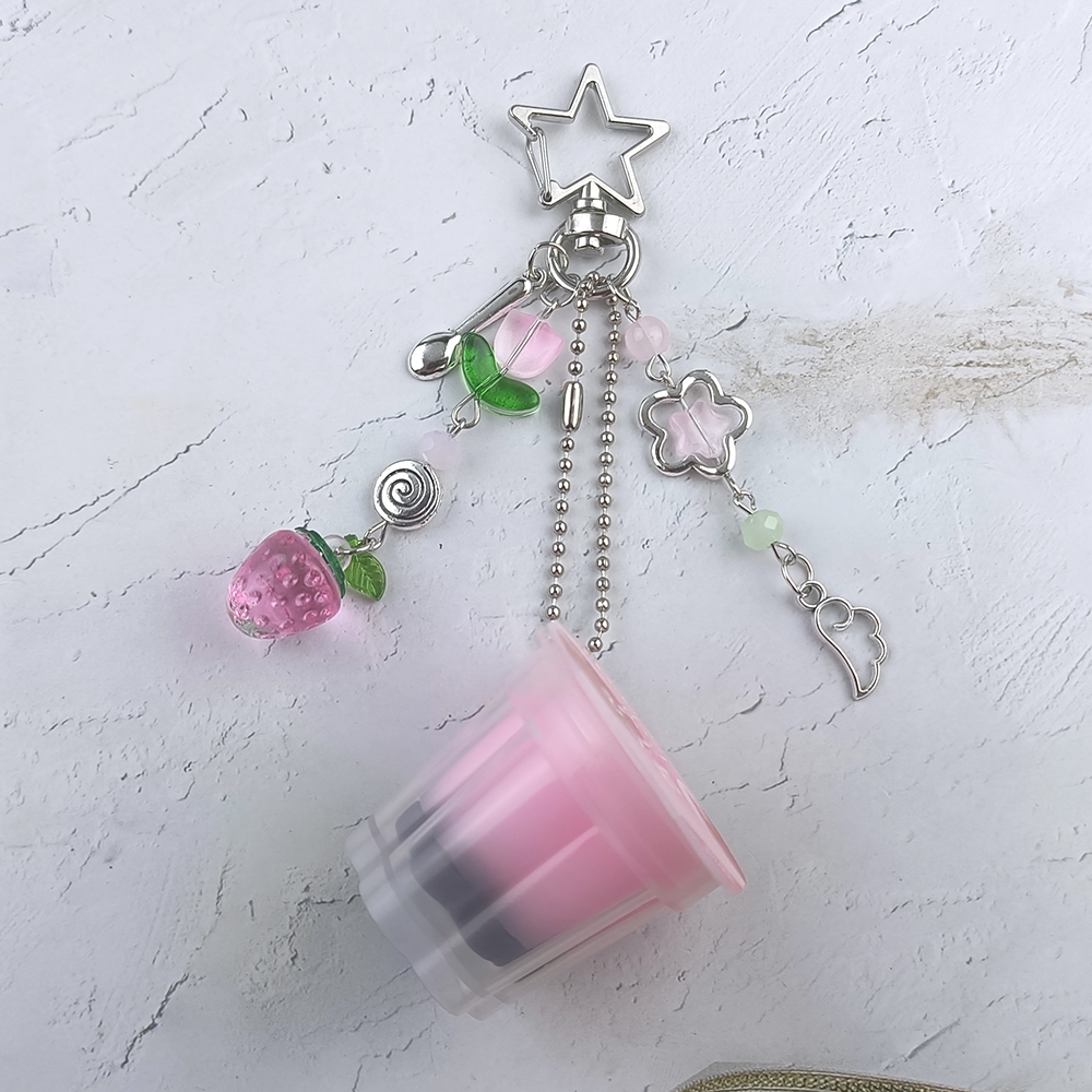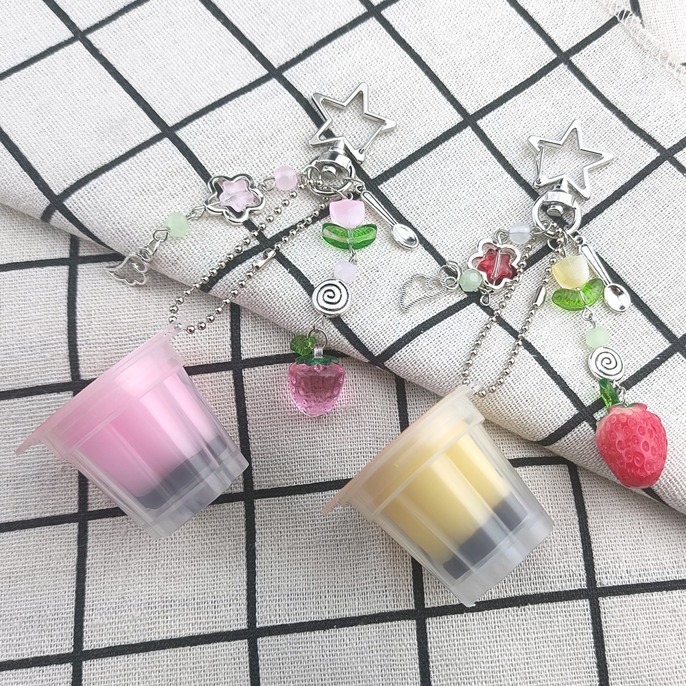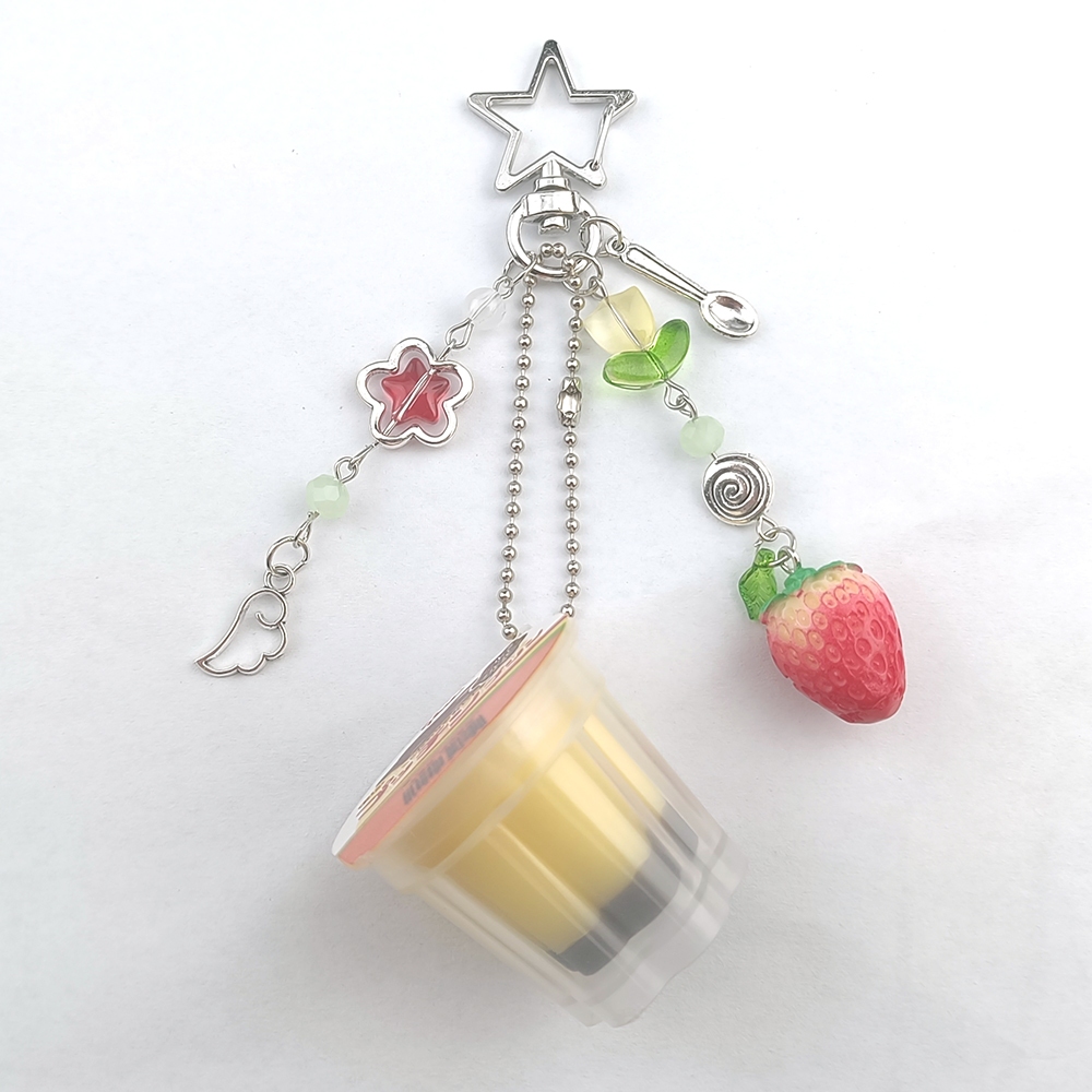Chaveiro De Pudim Japonês , Pingente De Flan De Ovo Amarelo Rosa , Acessório Estético Retrô Com Contas Y2K Heisei