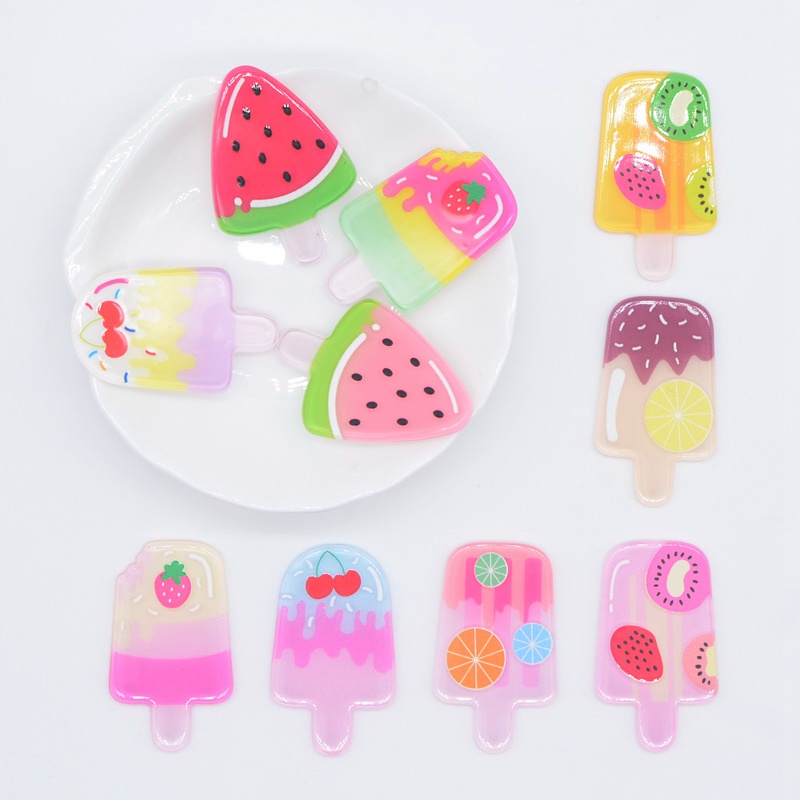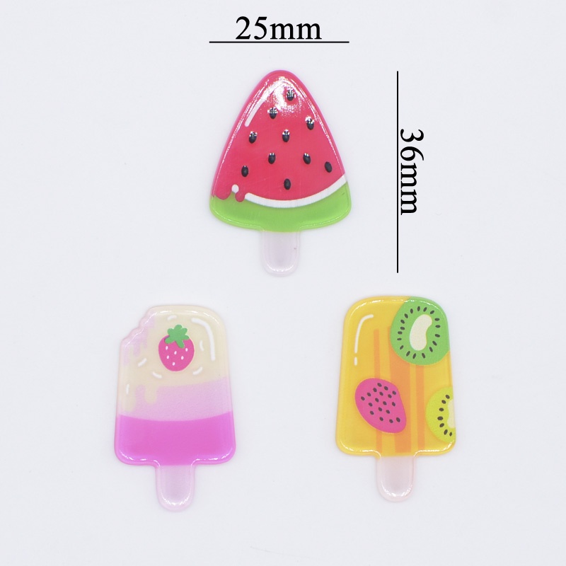 10 Pçs/lotes 25*36mm Doce Sorvete Resina Furit Bolo Impressão Acrílico Folha Padrão DIY Ornamento Acessórios