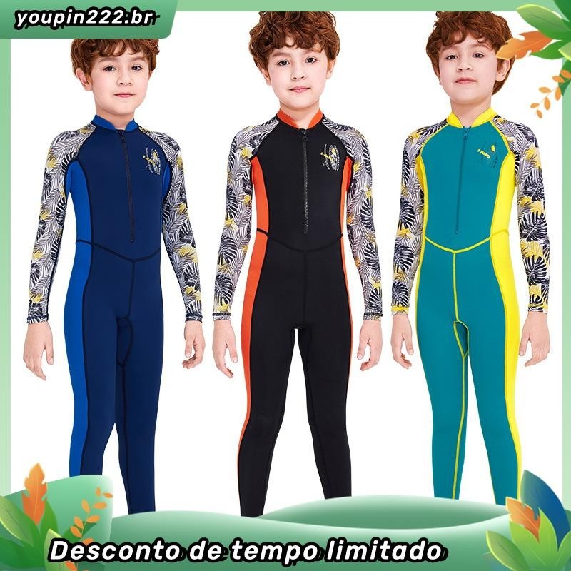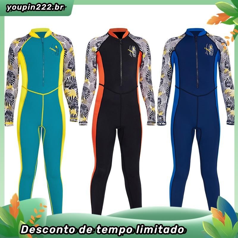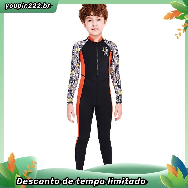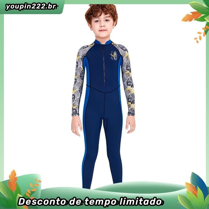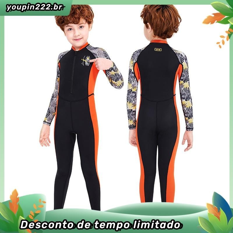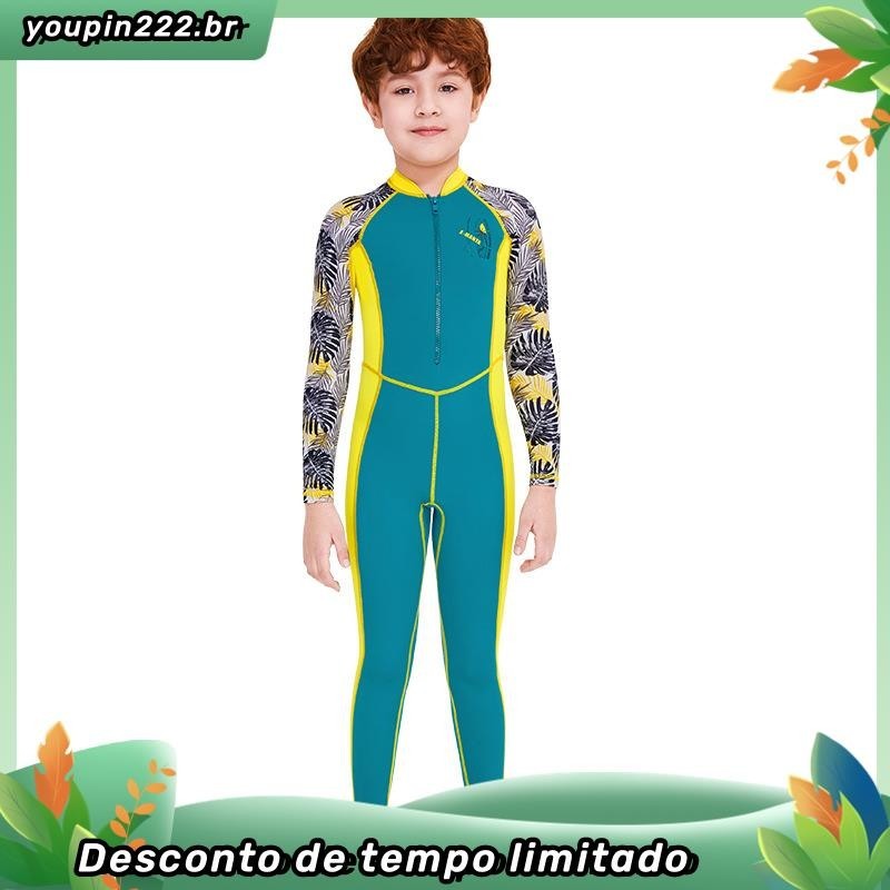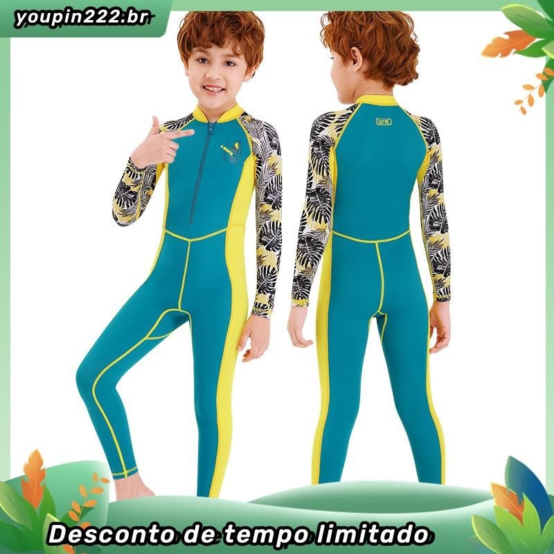 Crianças de manga comprida de uma peça de roupa de banho de 3-10 anos de idade Impresso Bonito Anti-Ultravioleta UPF50+