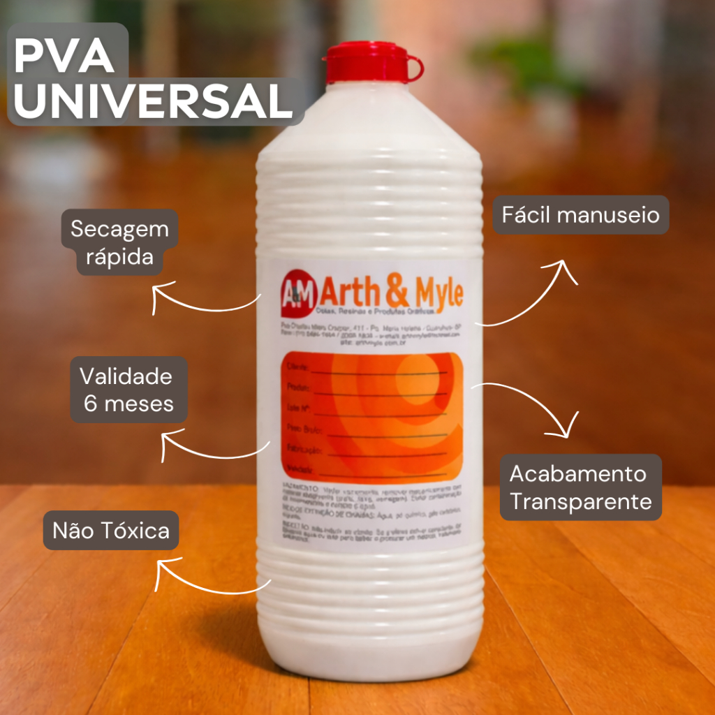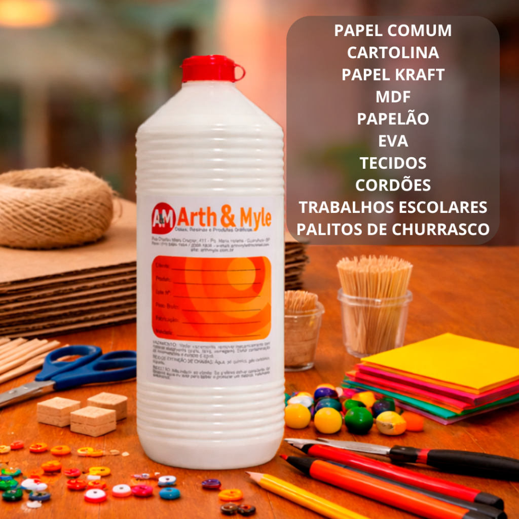 Cola Branca Pva Universal 1Kg - Papeis, artesanato, caixas, papelão, madeira, empastamento, embalagens, mdf etc.